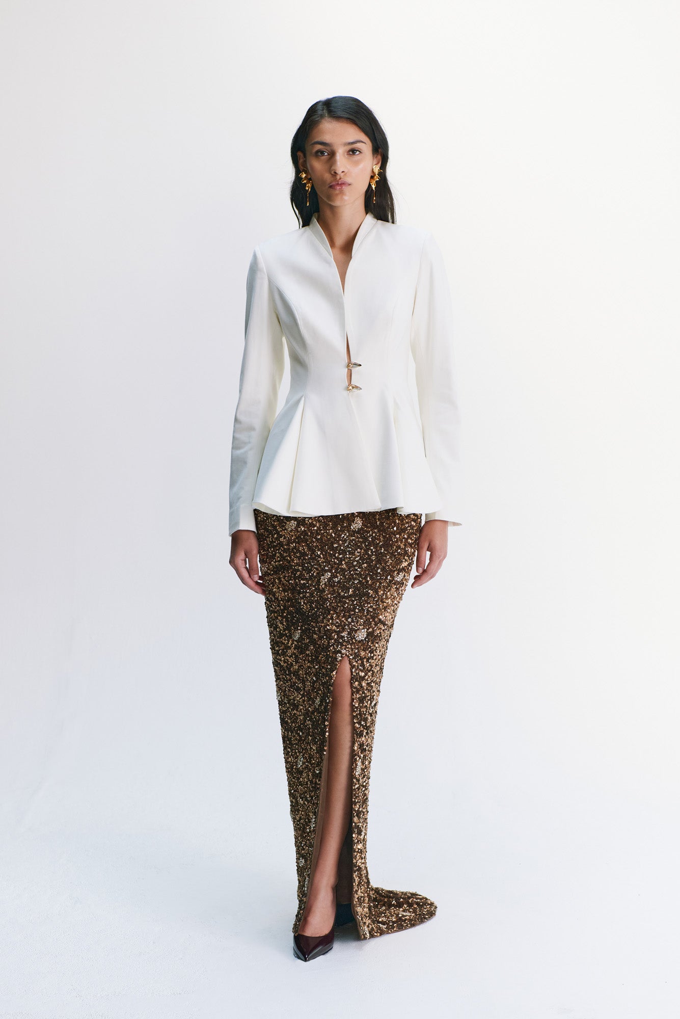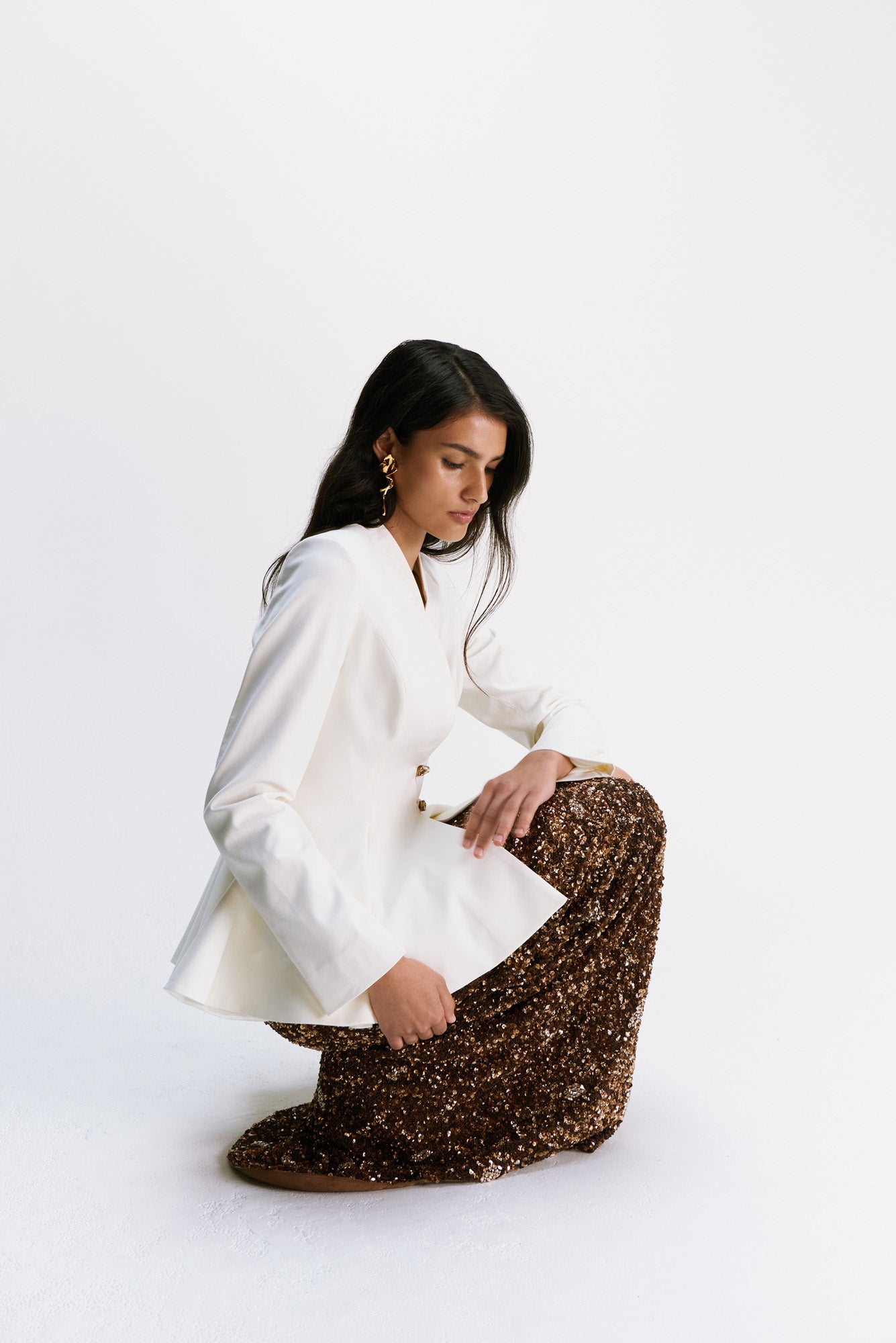 Jessel Taank in Aly Blouse & Beaded ombre Godet Sari