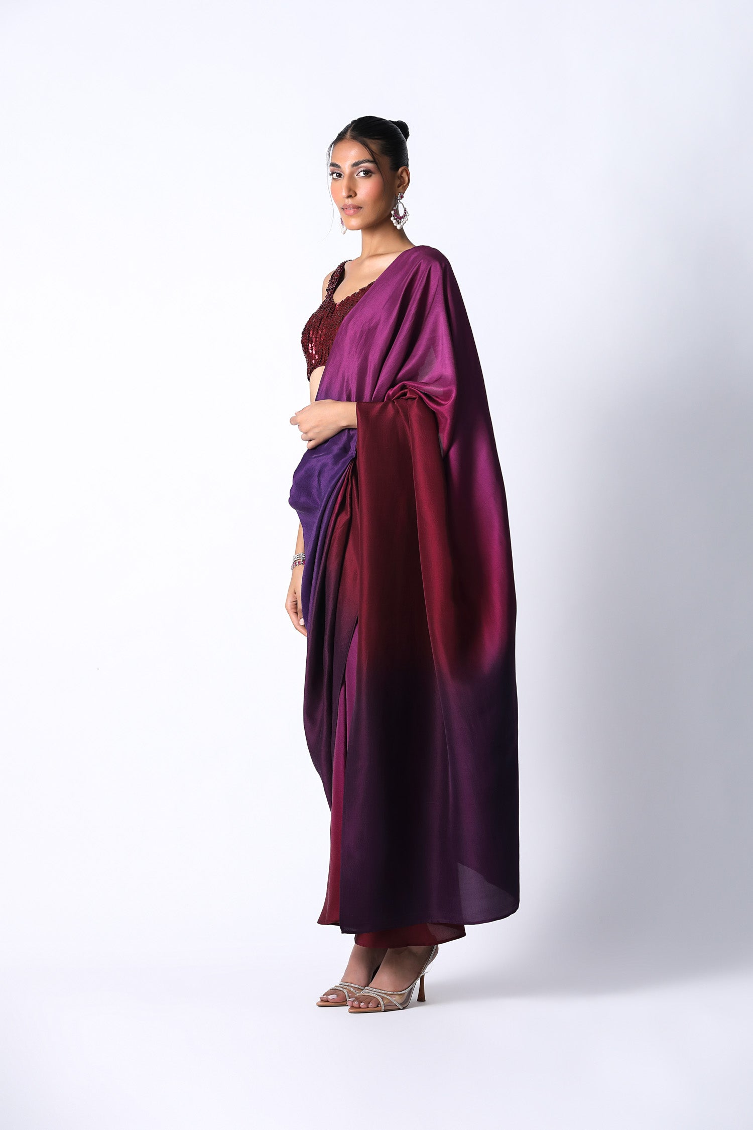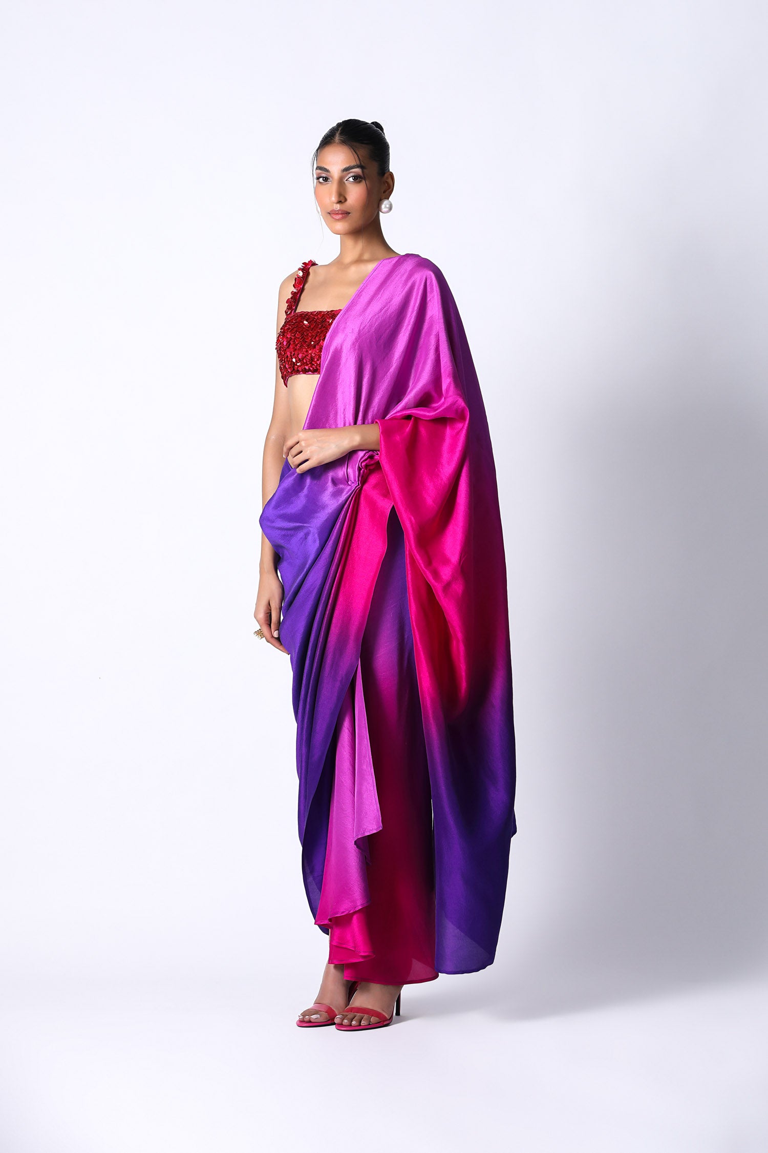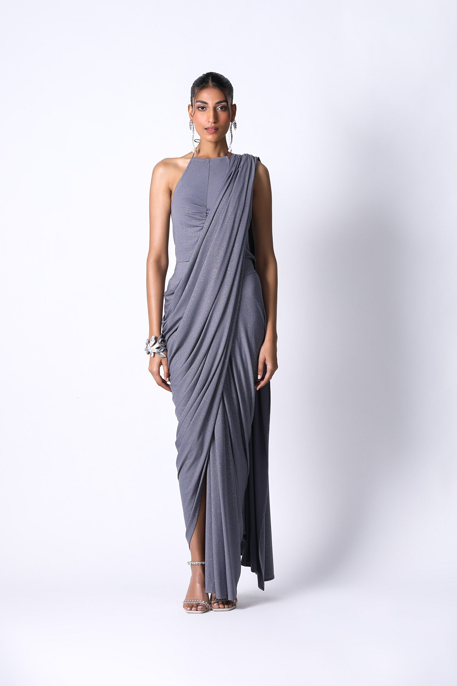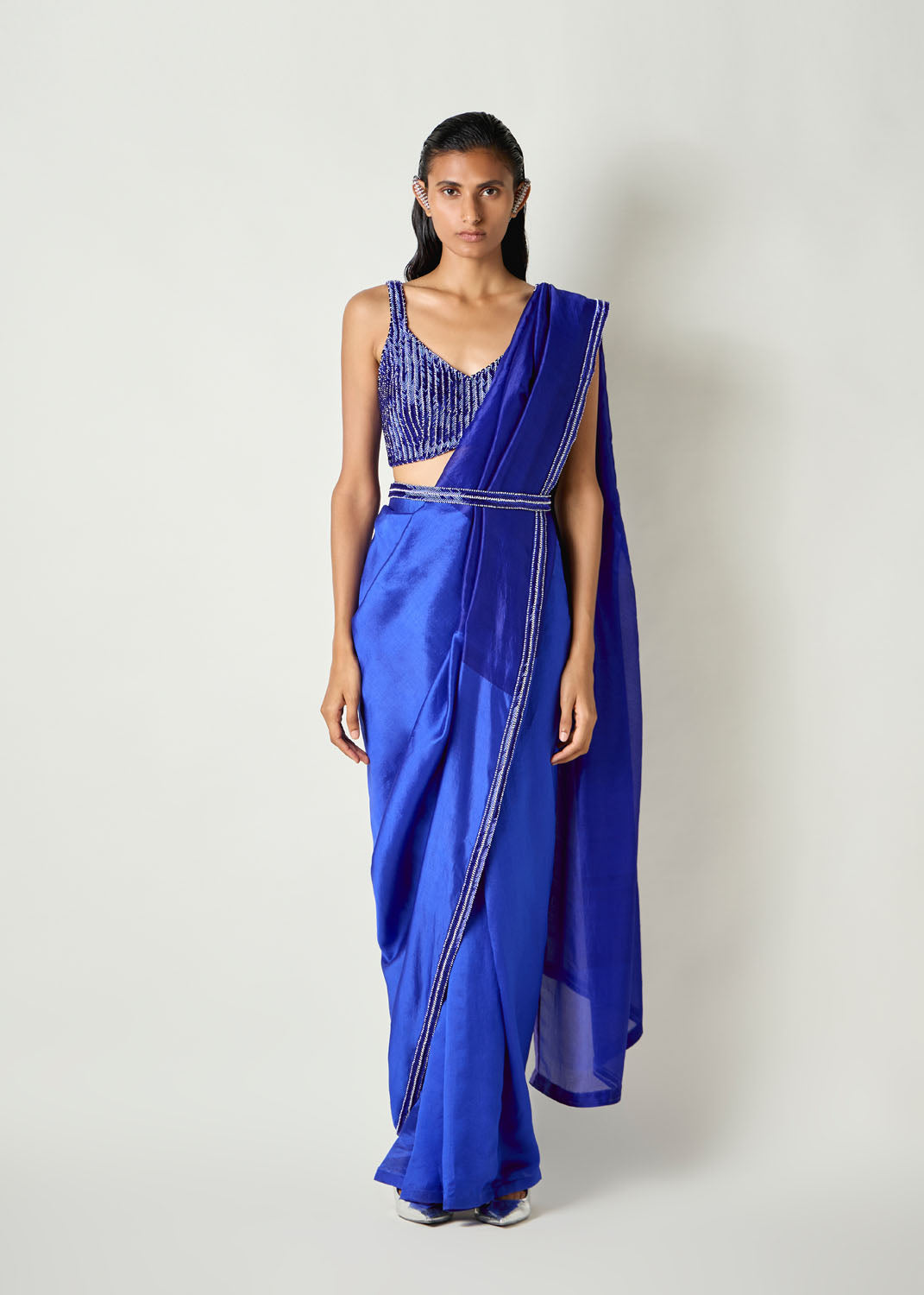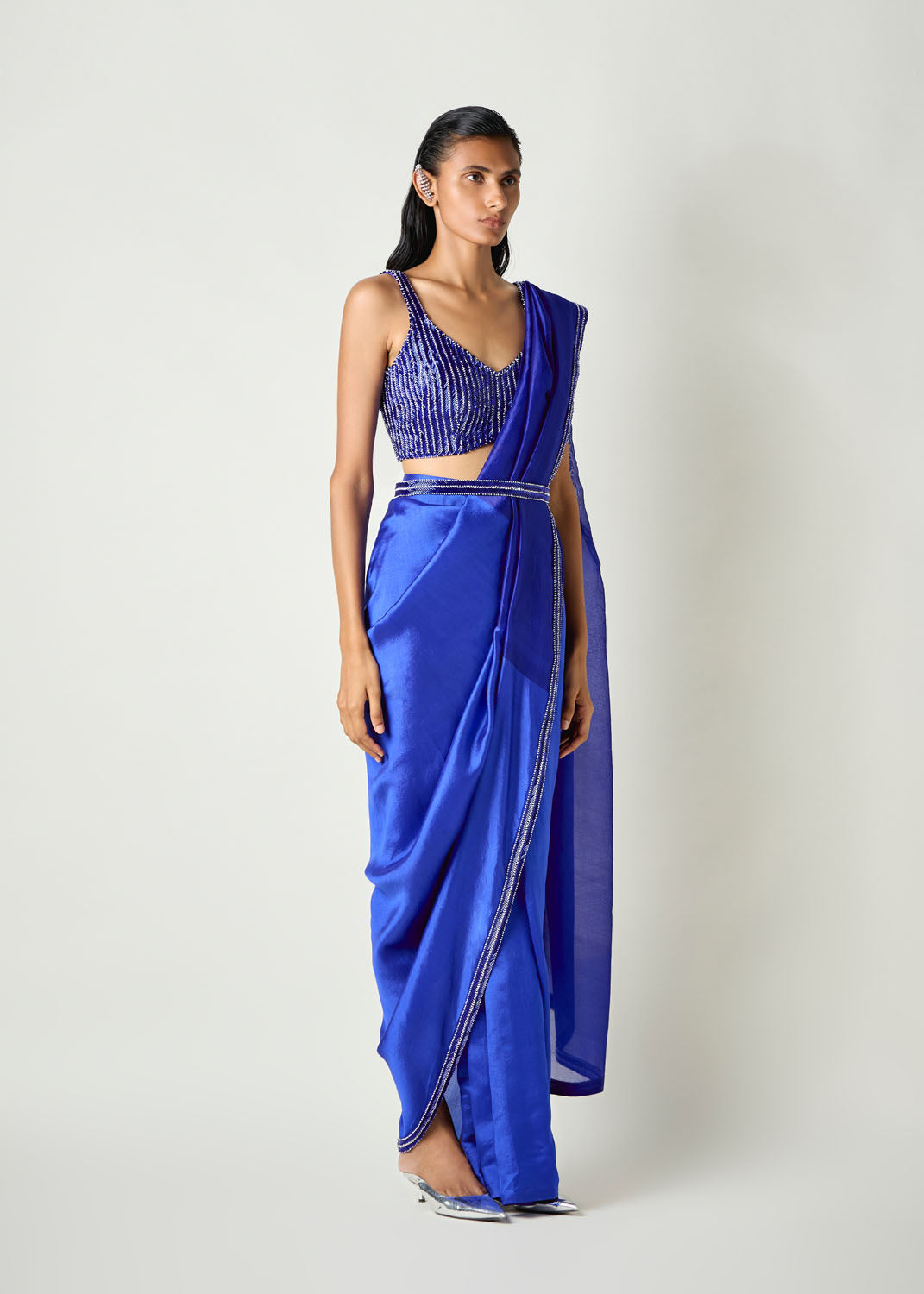 This artistic overlap of a collection redefines the sari, embodying culture and comfort. It's a revolutionary coming together of invention and tradition, like never before.