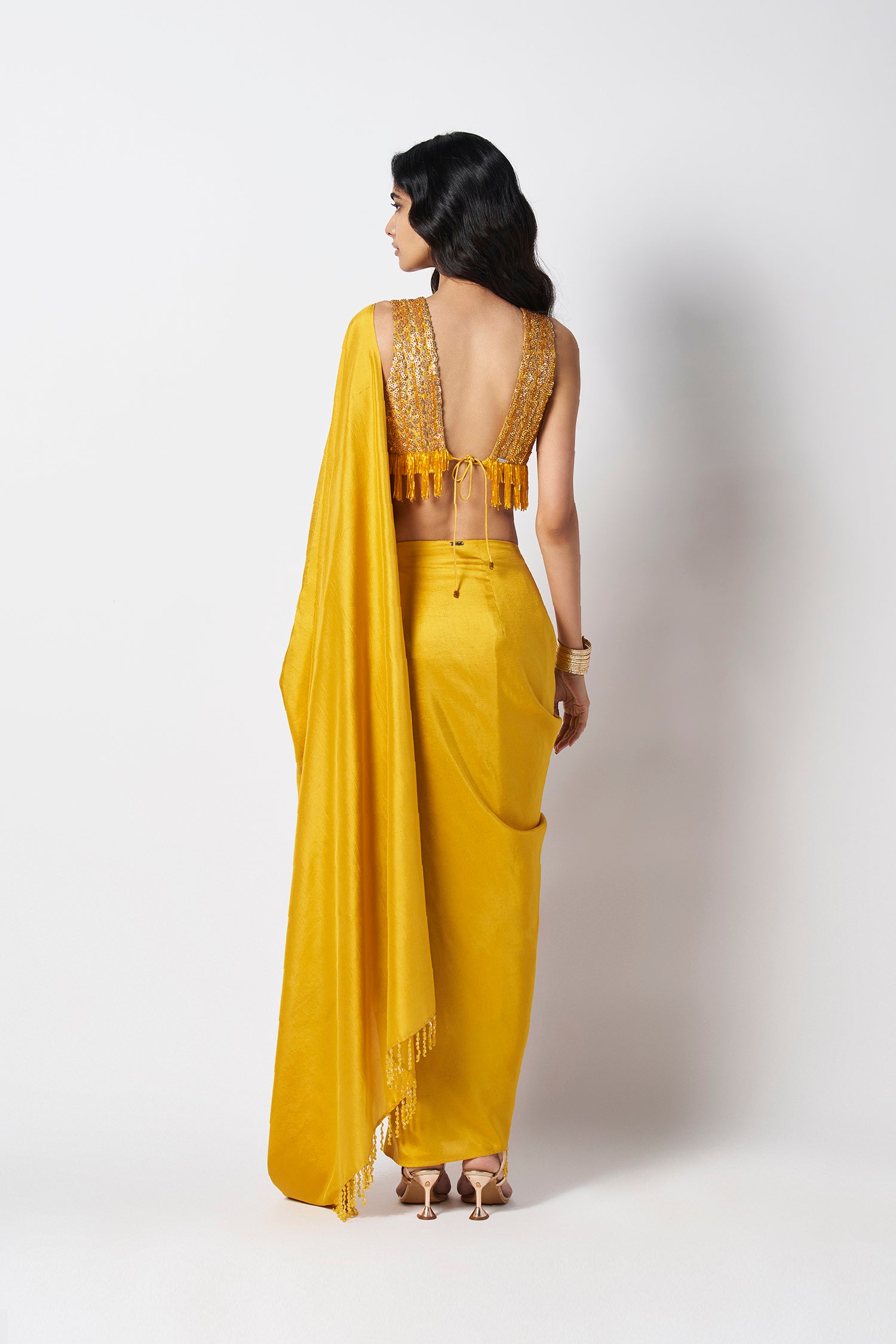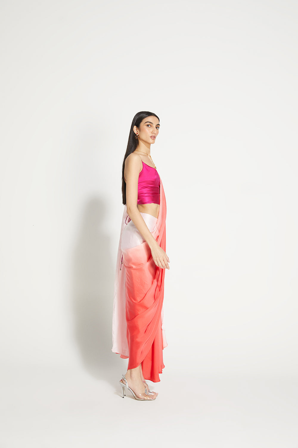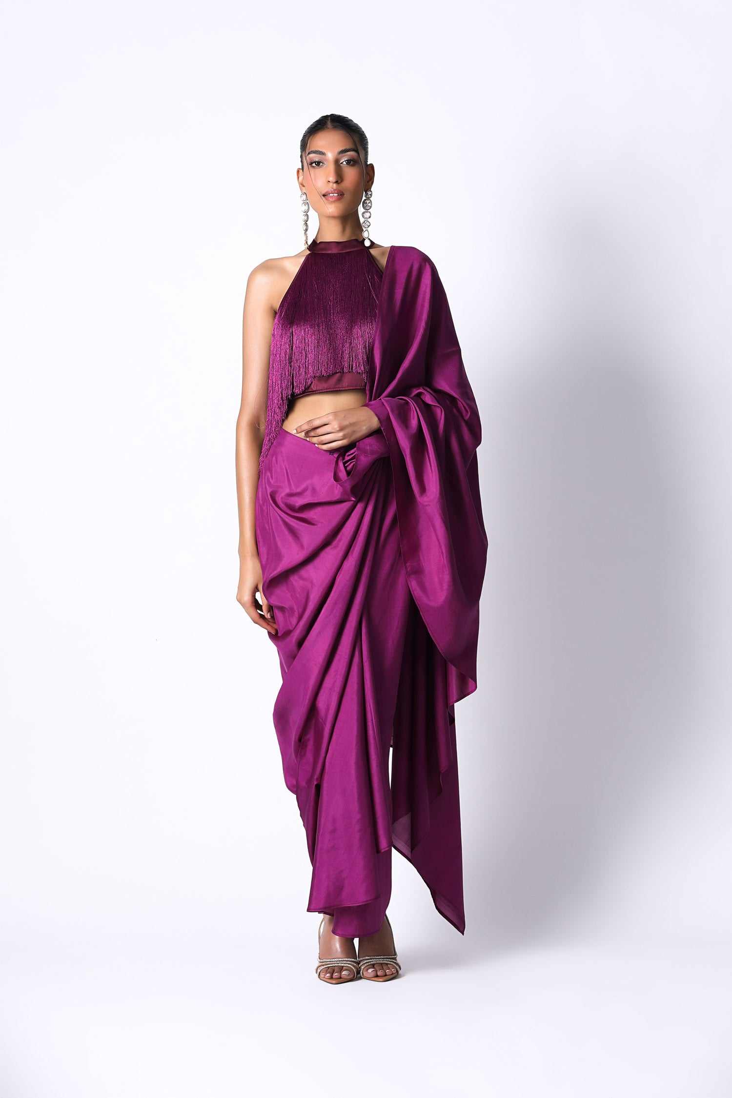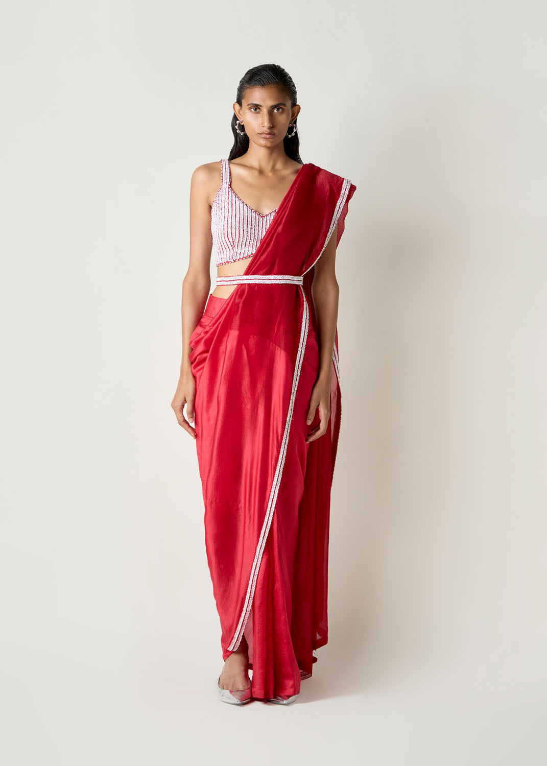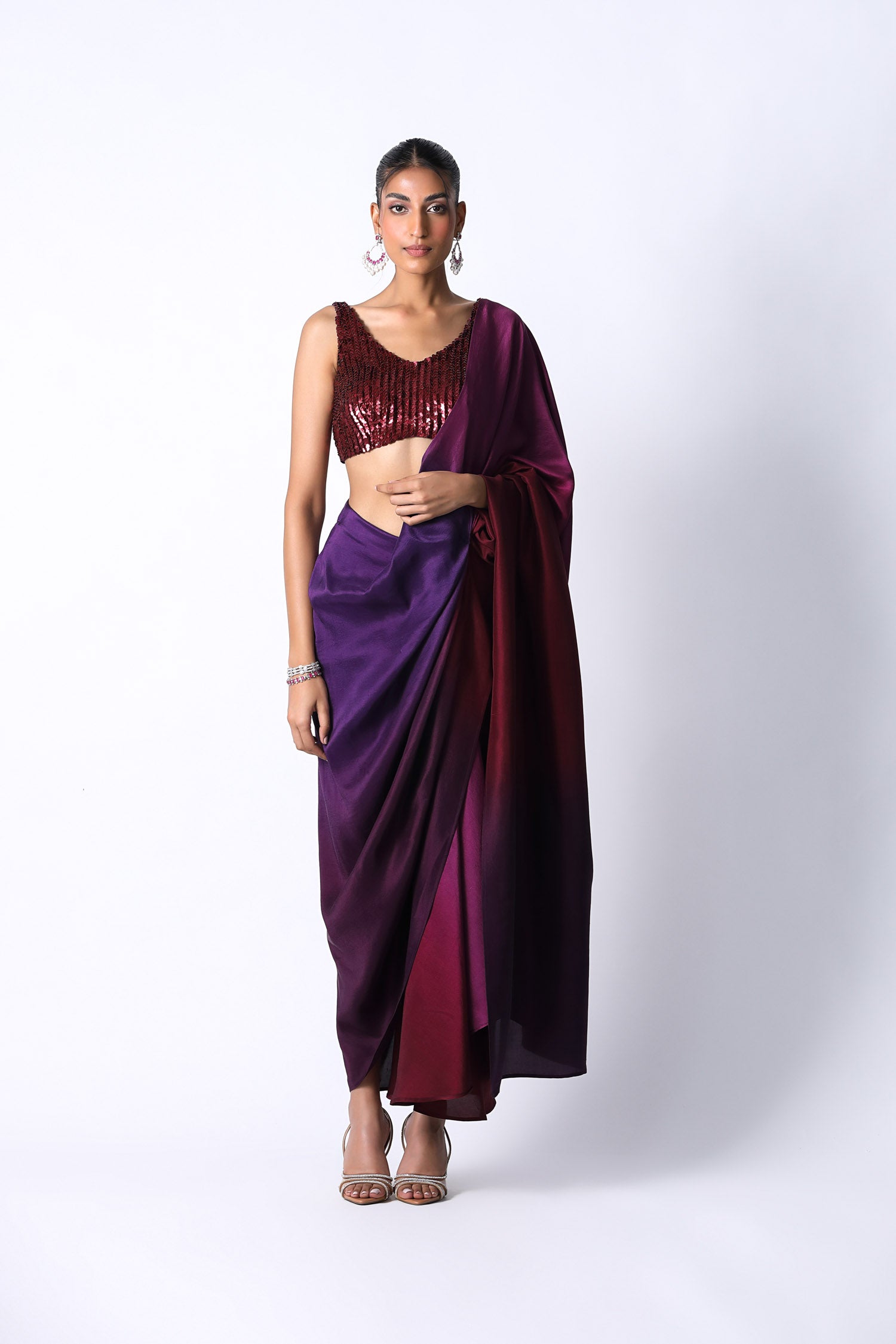 This artistic overlap of a collection redefines the sari, embodying culture and comfort. It's a revolutionary coming together of invention and tradition, like never before.