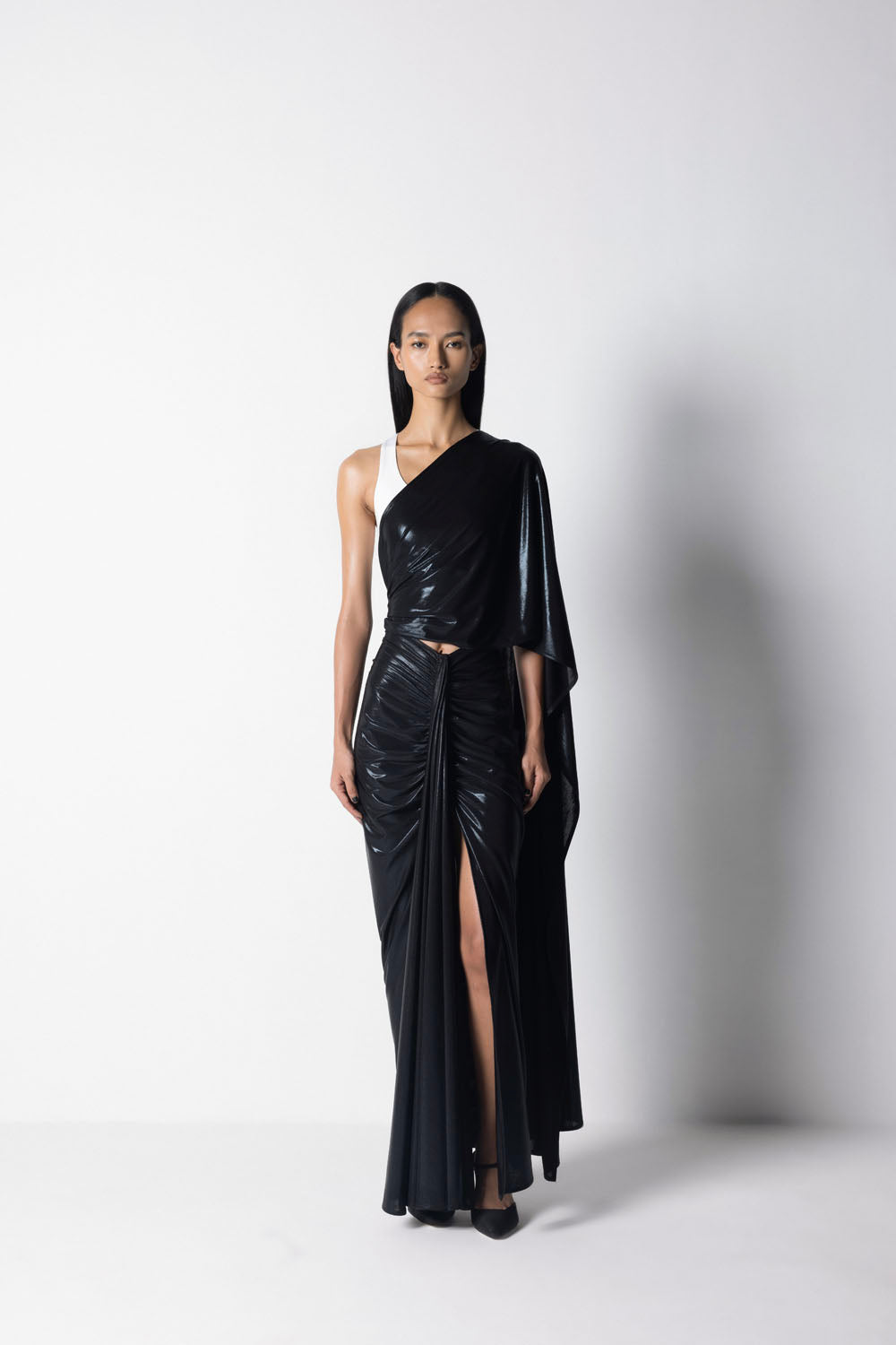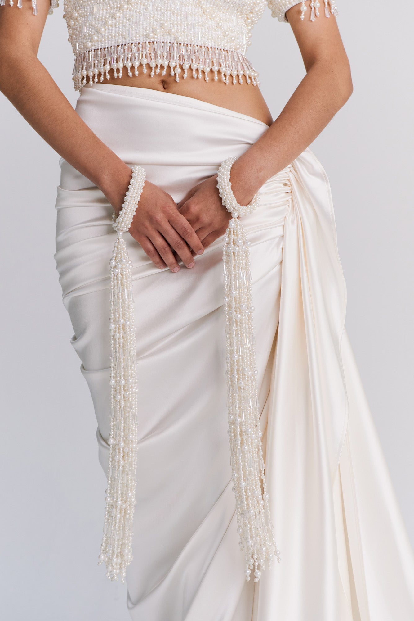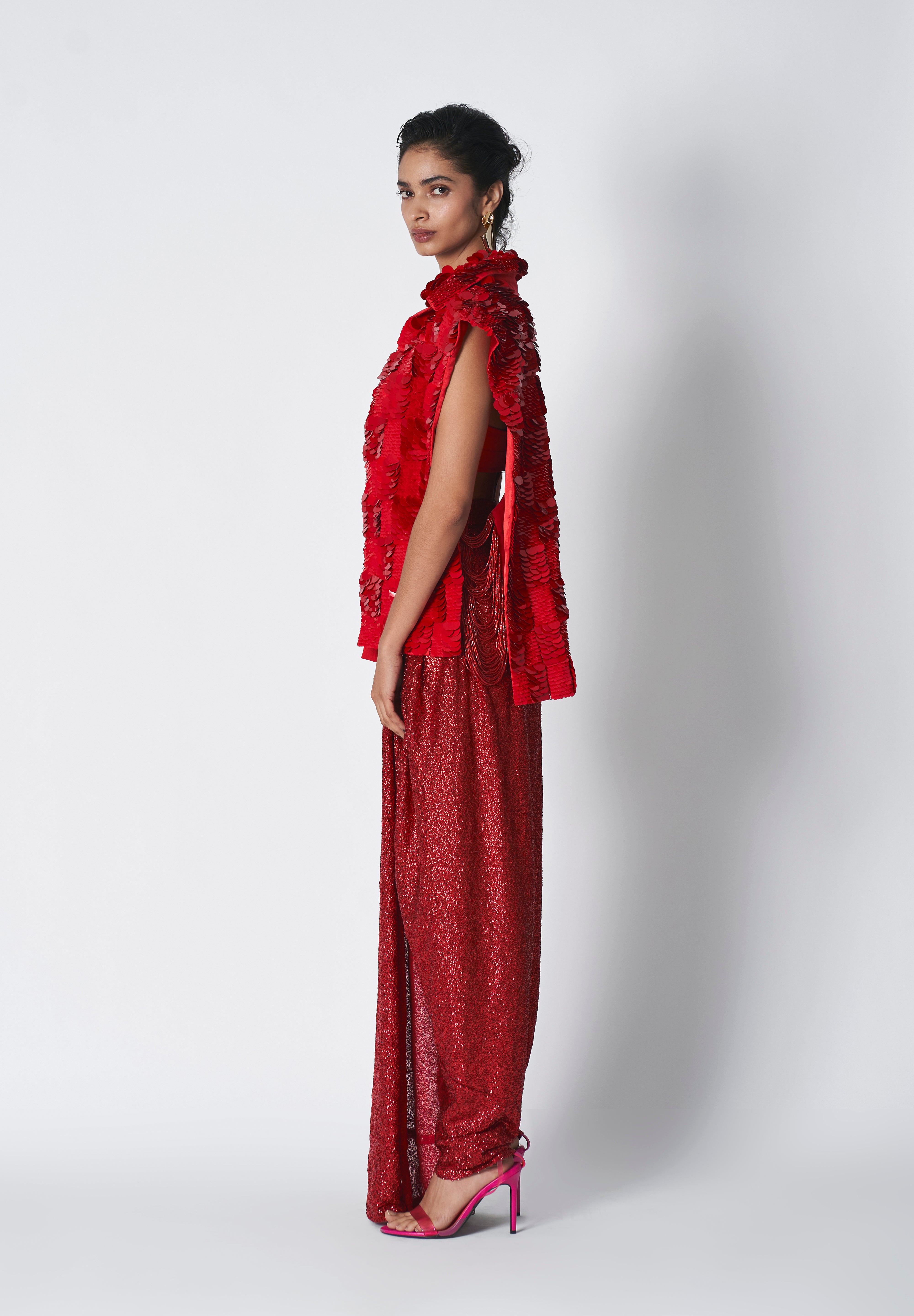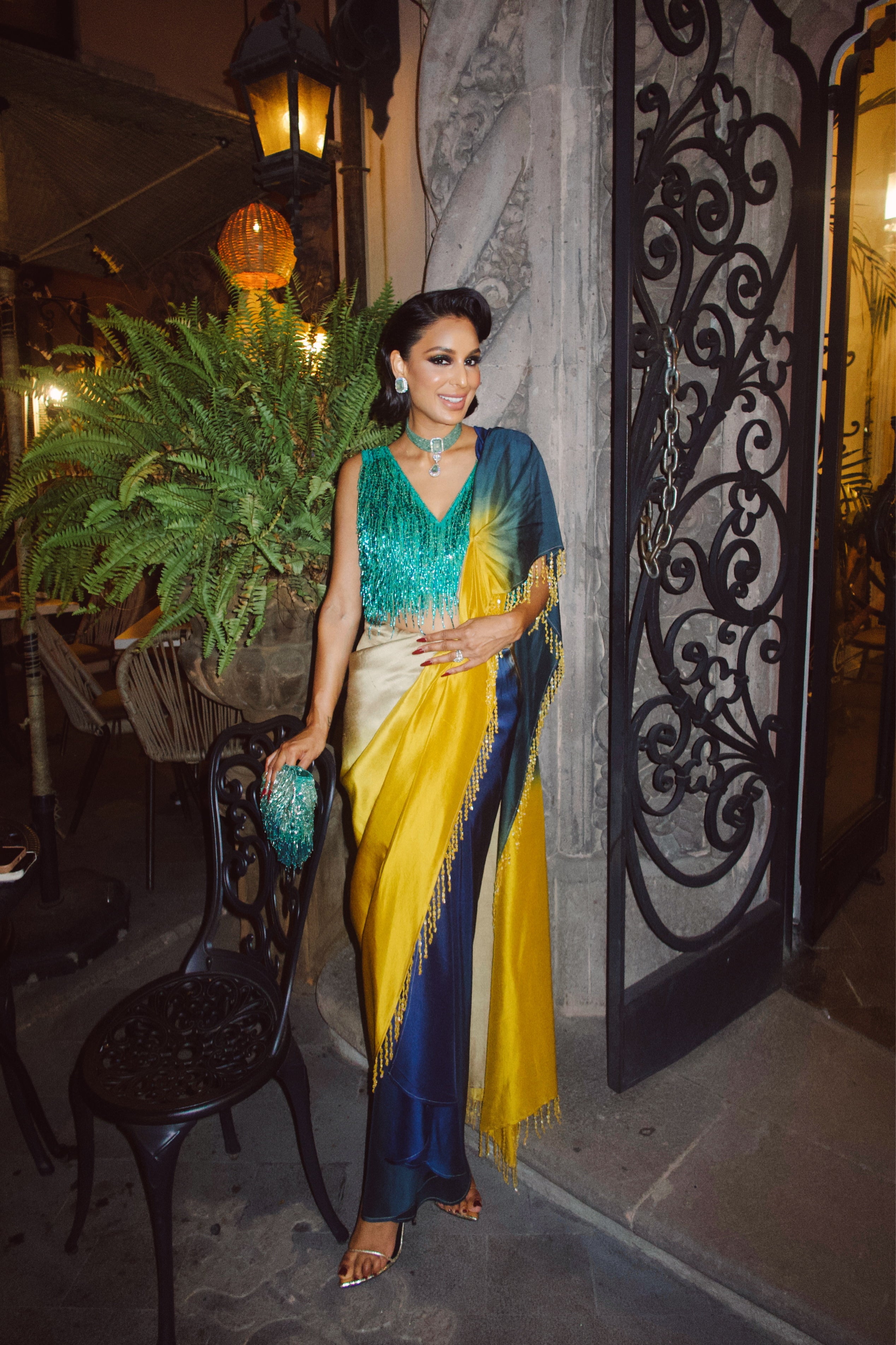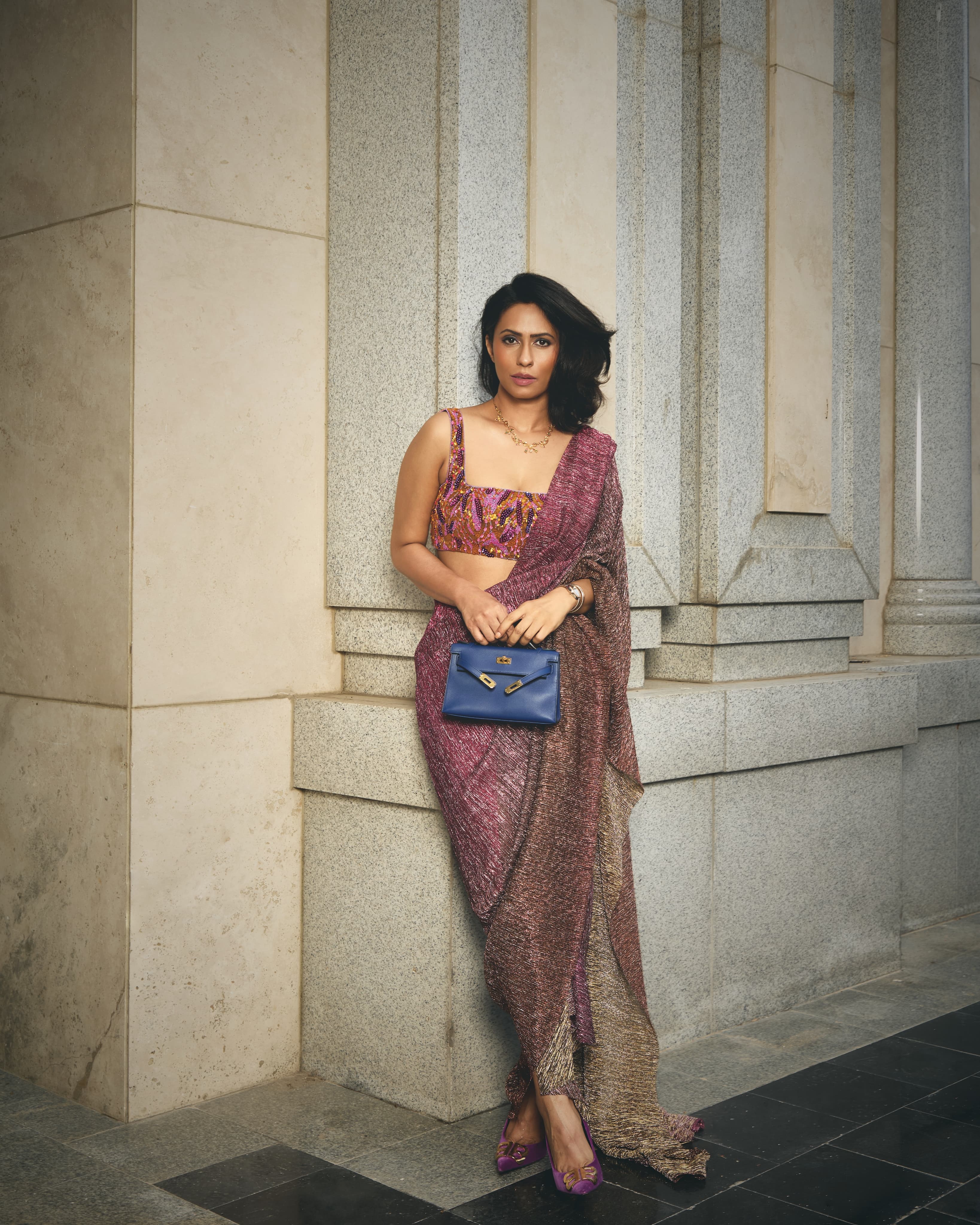 This artistic overlap of a collection redefines the sari, embodying culture and comfort. It's a revolutionary coming together of invention and tradition, like never before.