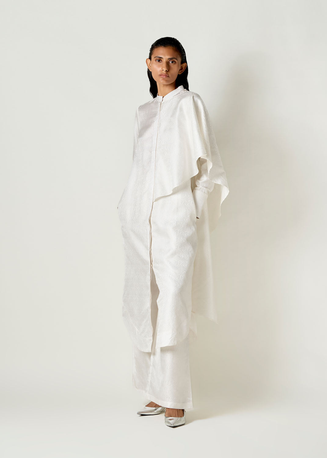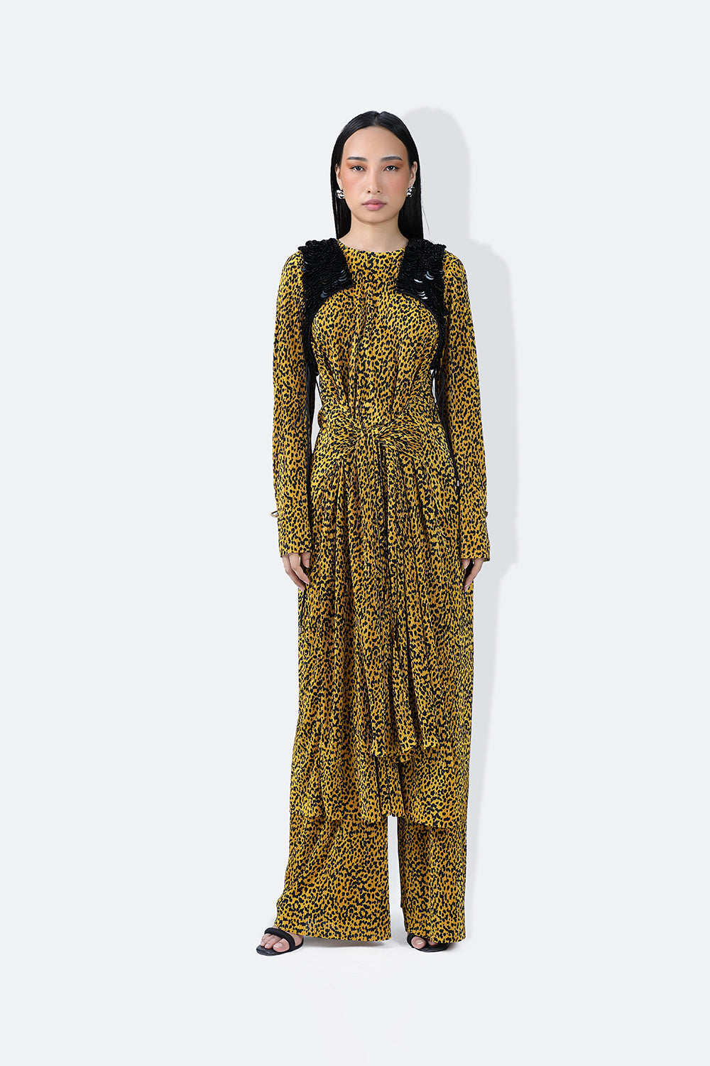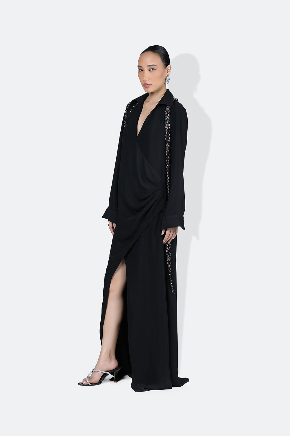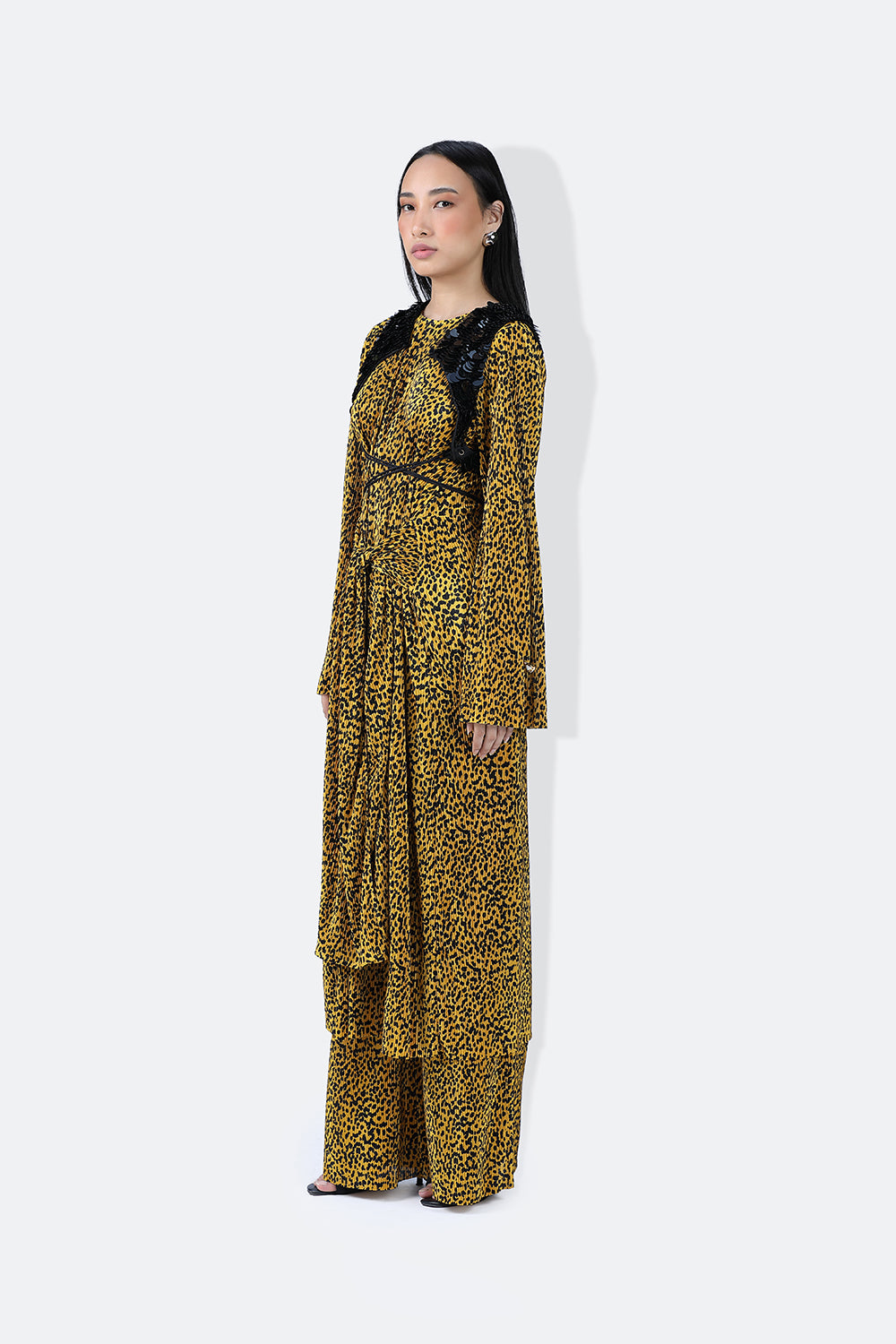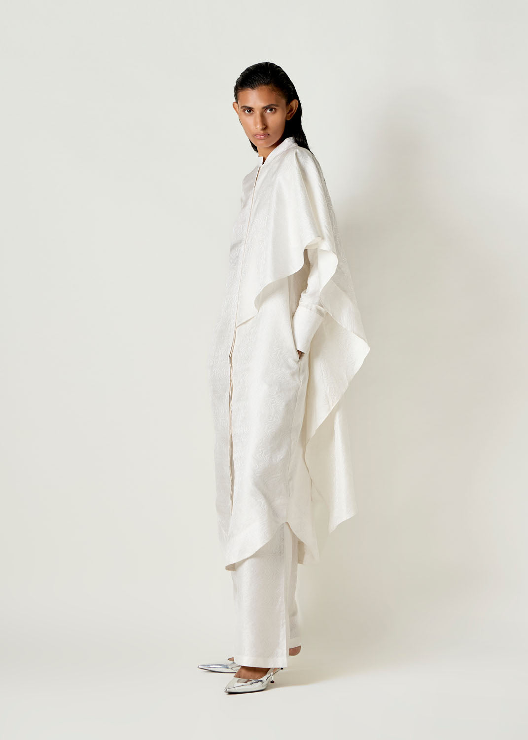 This artistic overlap of a collection redefines the sari, embodying culture and comfort. It's a revolutionary coming together of invention and tradition, like never before.