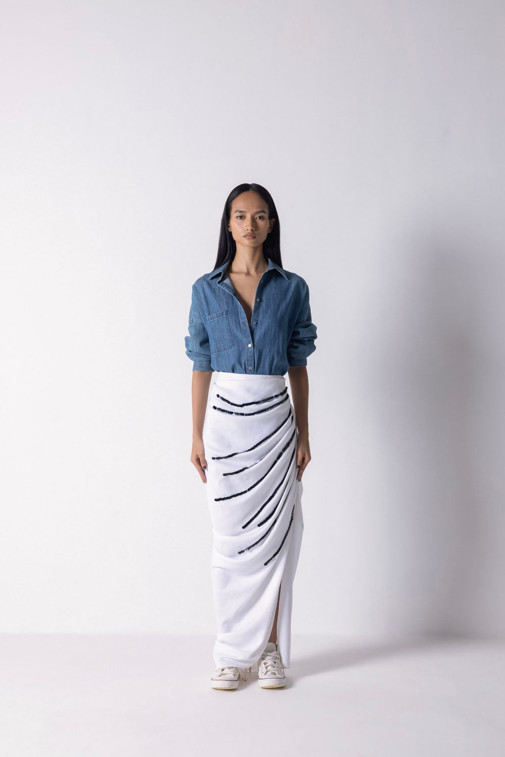 Marking the Xth year of 431-88 with a special collection, ICONS is where we put the spotlight on our signature draped skirts. ICONS is replete with light ornamentation, where weightless silks and satins play with textures, embroidery and our signature ombre in a range of looks that come alive through vibrant colours. Each piece is delicately crafted with details that move with you and give equal importance to the fit and finish. The collection is an amalgamation of our bestselling silhouttes in the form of skirts, oversized shirts and sexy tops. Whether it's a dinner party, a city escape or your next destination trip, ICONS has you covered to go from day to night.