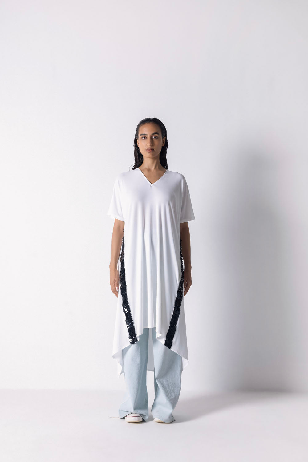 "I am because we are." Inspired by the humanity we witnessed during India’s second Covid wave, this collection draws from Ubuntu—an African philosophy rooted in oneness and interconnectedness. Strangers became lifelines, and kindness bridged distances. This spirit of unity is reflected in blurred boundaries: dip-dyed ombrés, contrasts in texture and form, heavy crystals on delicate jerseys, and layered silhouettes. Knots symbolise coming together, while subtle silks reveal bold linings. Ubuntu is the 17th collection from 431-88—available online and in select stores across India.