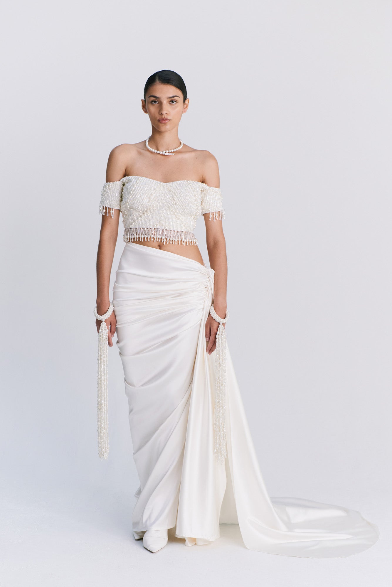 From sculpted drapes to pearl-laden blouses, each look is designed for the woman who chooses presence over spectacle.