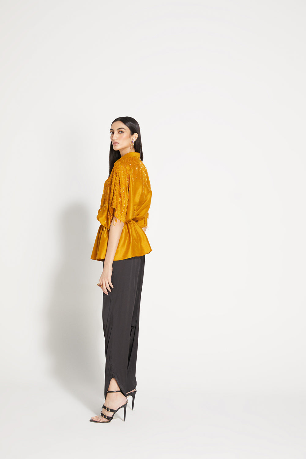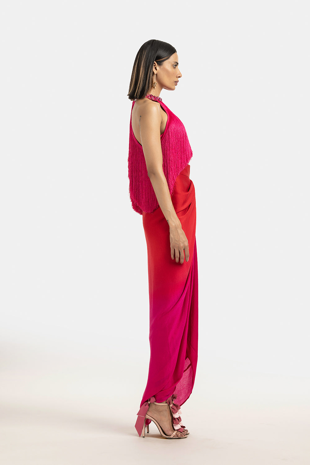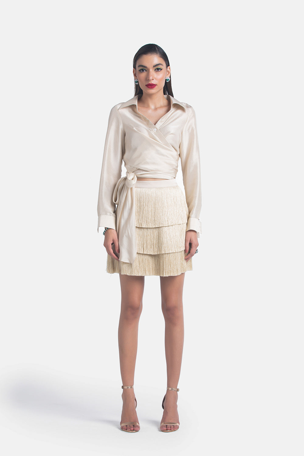 Fringe Edit, a must-have for anyone seeking to add an element of playful sophistication to their wardrobe. This collection features a range of fringed pieces, from blouses to jackets, all available in bold and neutral colors. Each item in our Fringe Edit is thoughtfully designed to add a unique touch to your wardrobe, while remaining versatile enough to be worn with ease. It is particularly stunning when paired with our pre-draped sari, creating an alluring fusion. Whether you're looking to make a statement at a special occasion or add some flair to your everyday style, our Fringe Edit is for you.