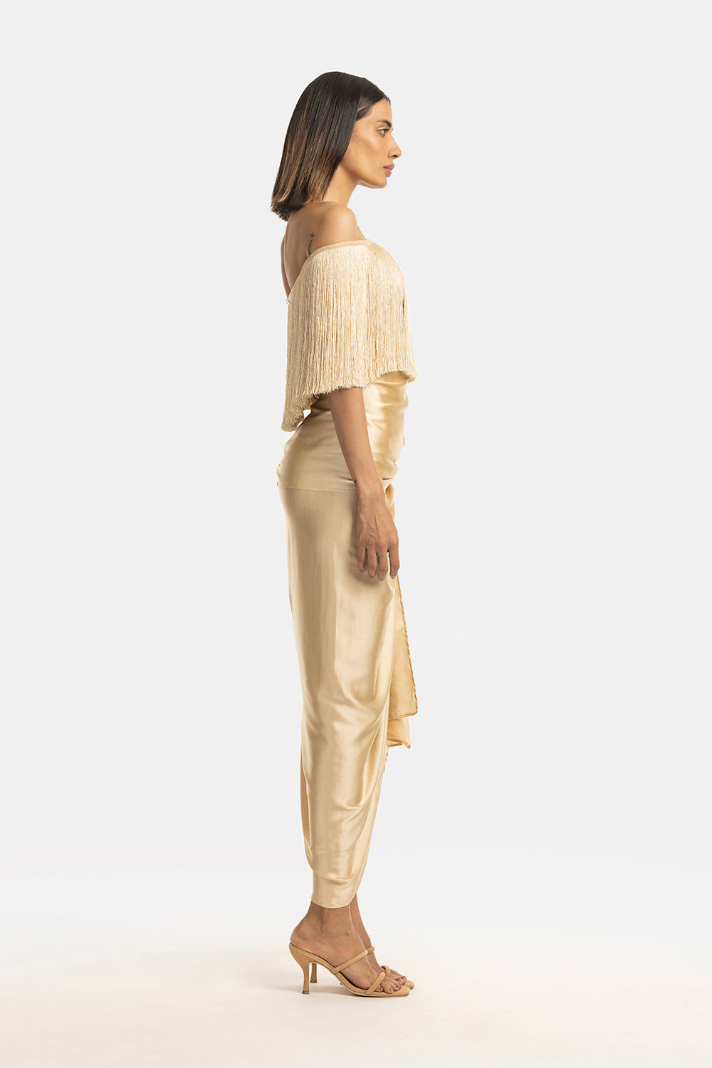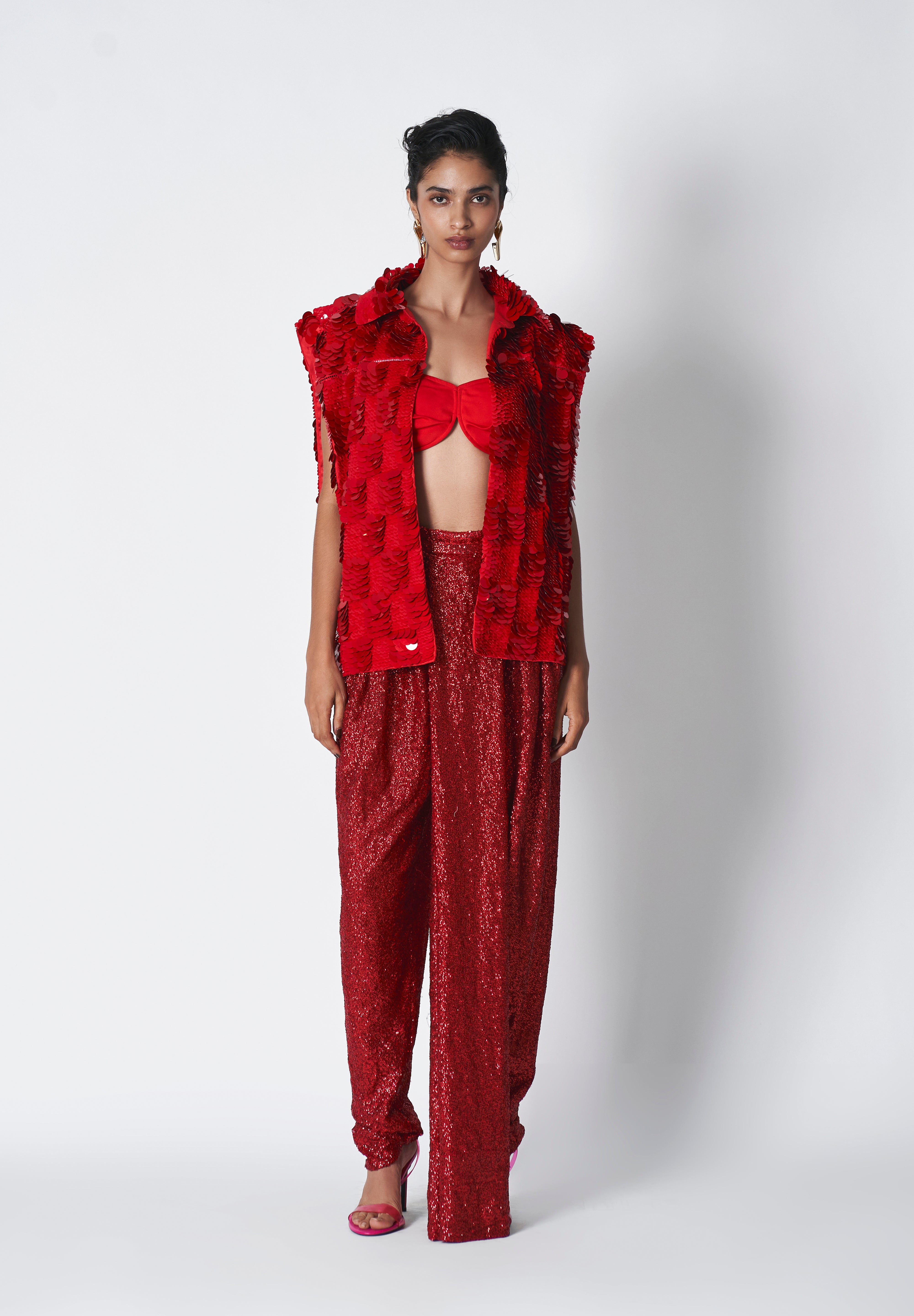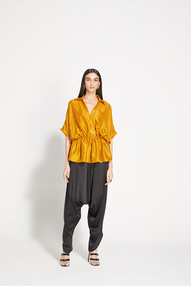 Fringe Edit, a must-have for anyone seeking to add an element of playful sophistication to their wardrobe. This collection features a range of fringed pieces, from blouses to jackets, all available in bold and neutral colors. Each item in our Fringe Edit is thoughtfully designed to add a unique touch to your wardrobe, while remaining versatile enough to be worn with ease. It is particularly stunning when paired with our pre-draped sari, creating an alluring fusion. Whether you're looking to make a statement at a special occasion or add some flair to your everyday style, our Fringe Edit is for you.