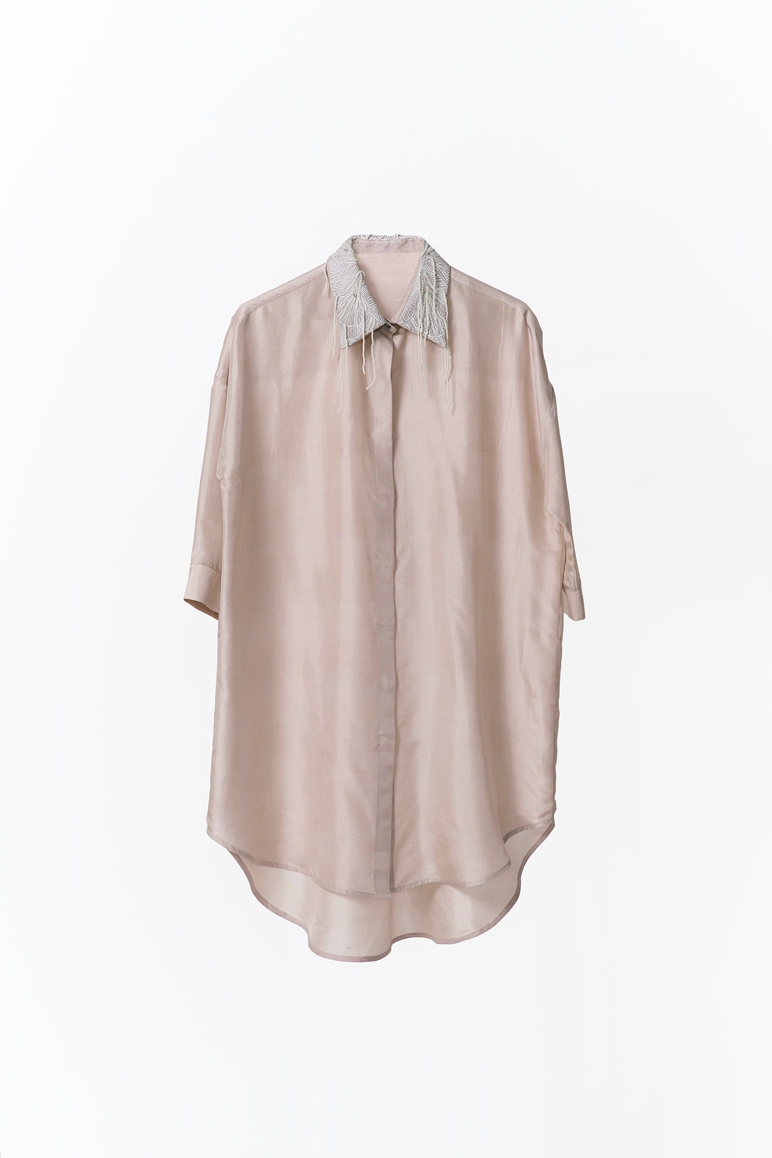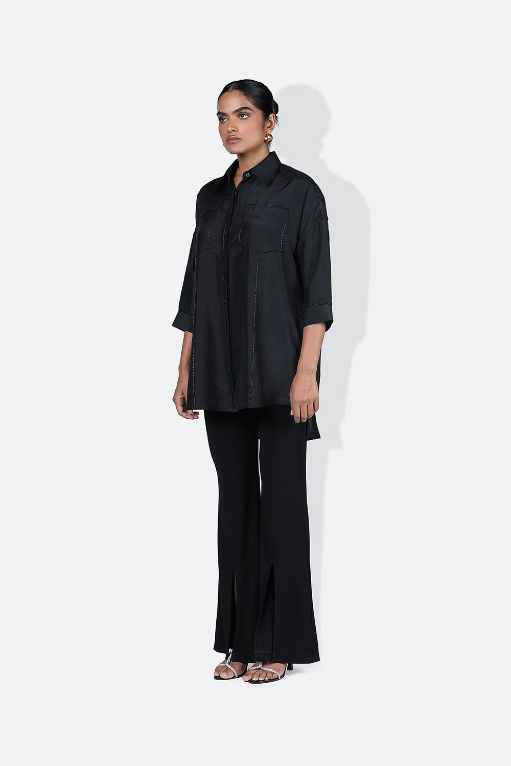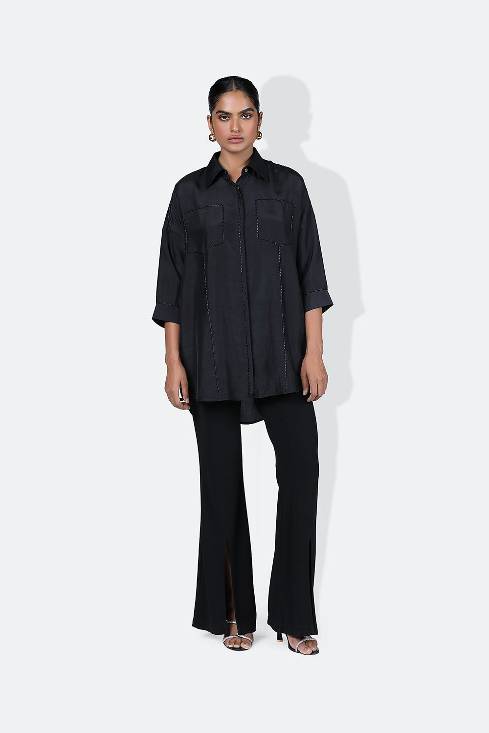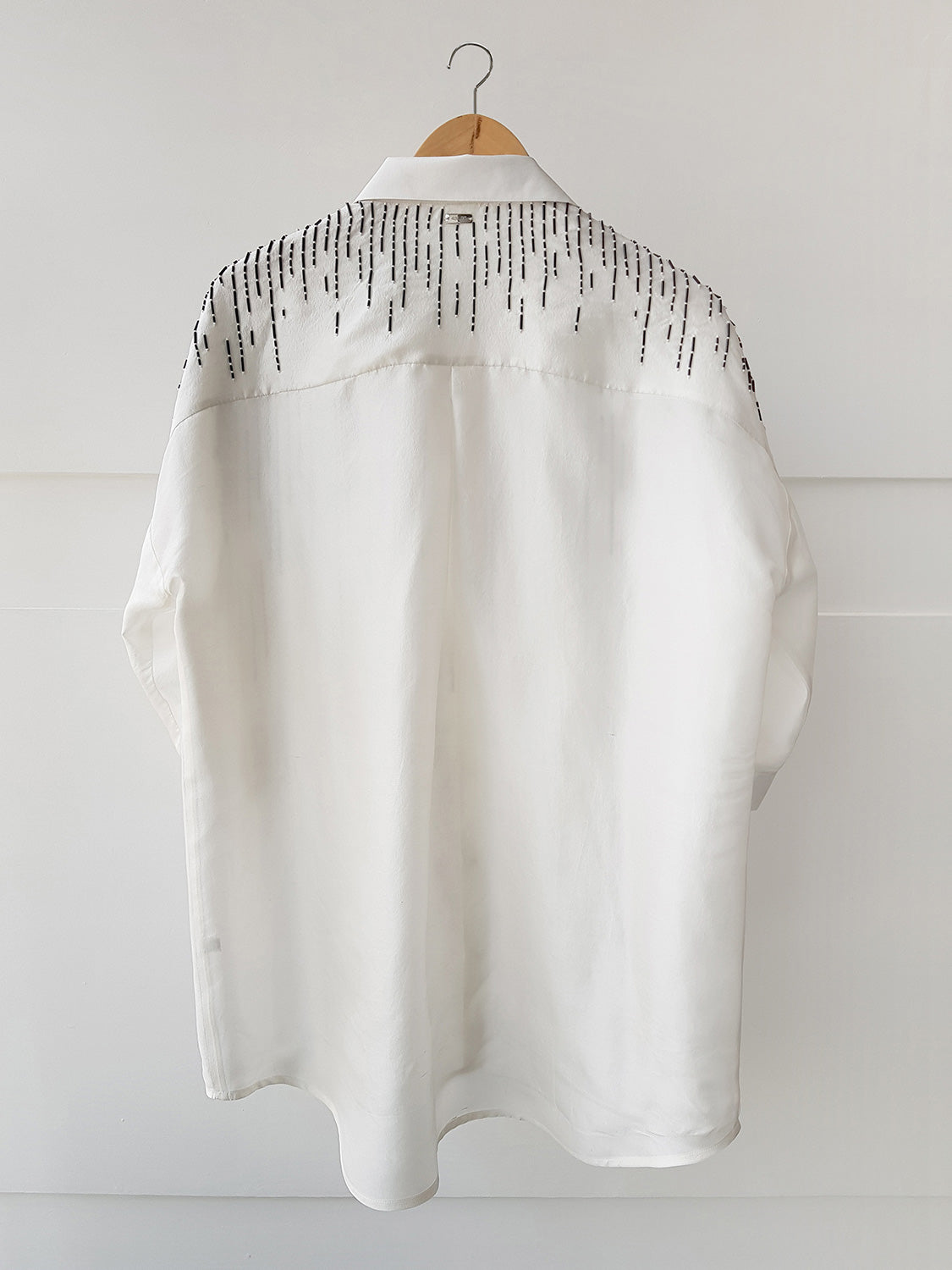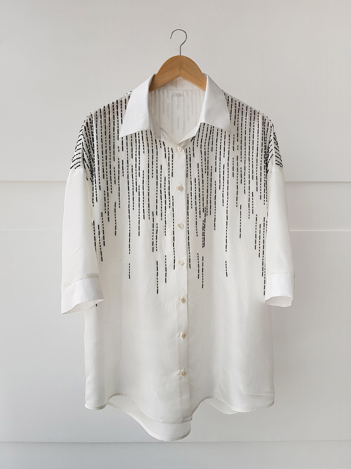 Pause & Reflect collection - where we've created a range of luxurious silk shirts and skirts that exude class and sophistication. Our collection features an array of statement pieces, including our hand-embroidered tassel, bead, and sequin shirts, which will elevate any outfit to the next level. Our front tie knot styled shirts pair perfectly with our draped skirts, which can be worn in three different ways, making it easy to create a range of versatile looks. Our collection is all about the essentials, ensuring that you'll always have a go-to piece for any occasion. From the office to an evening out, our Pause & Reflect collection has you covered with sophisticated style that's second to none. Fitting all body types.