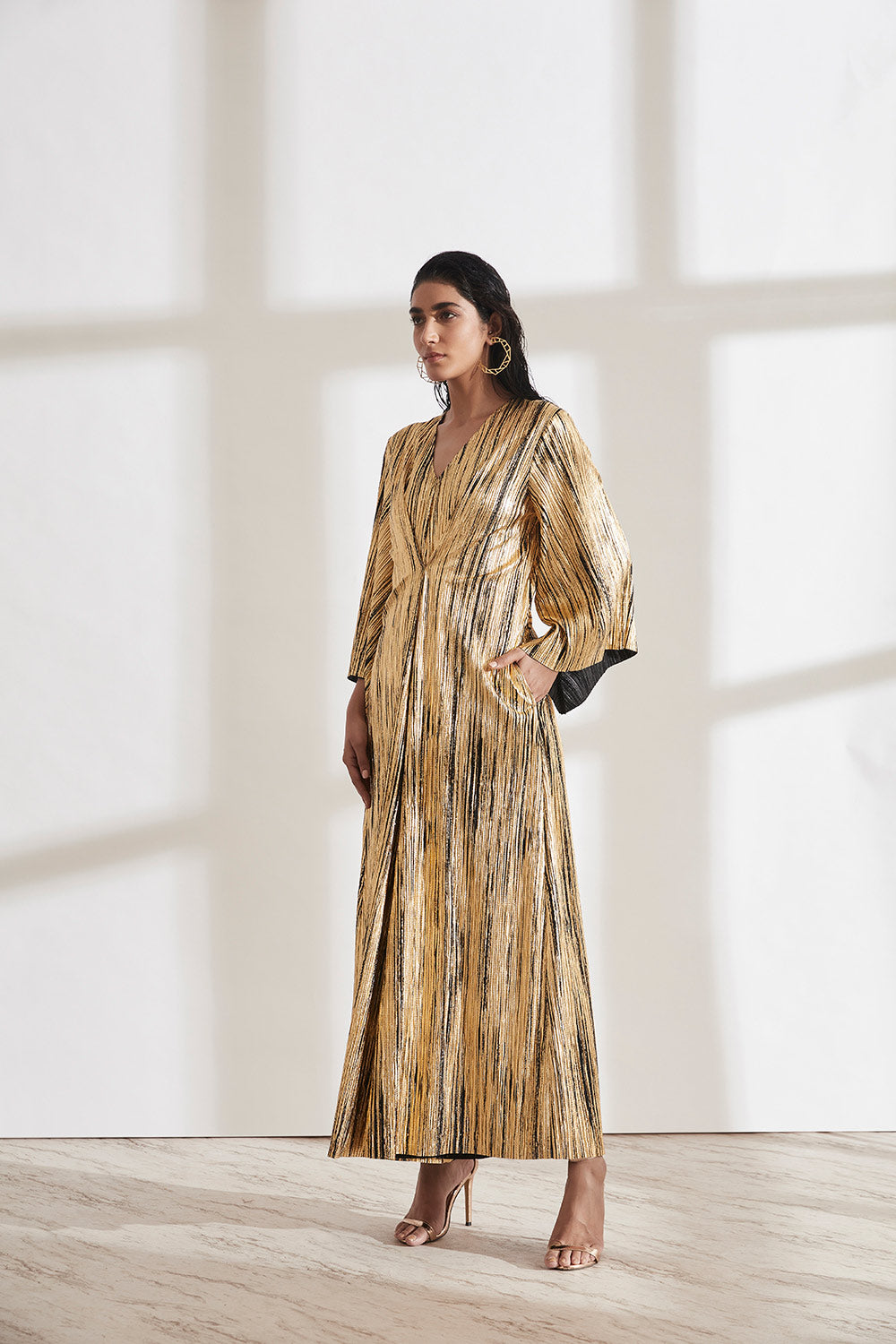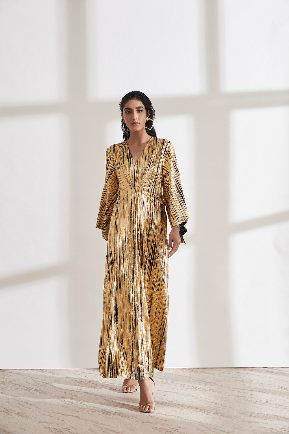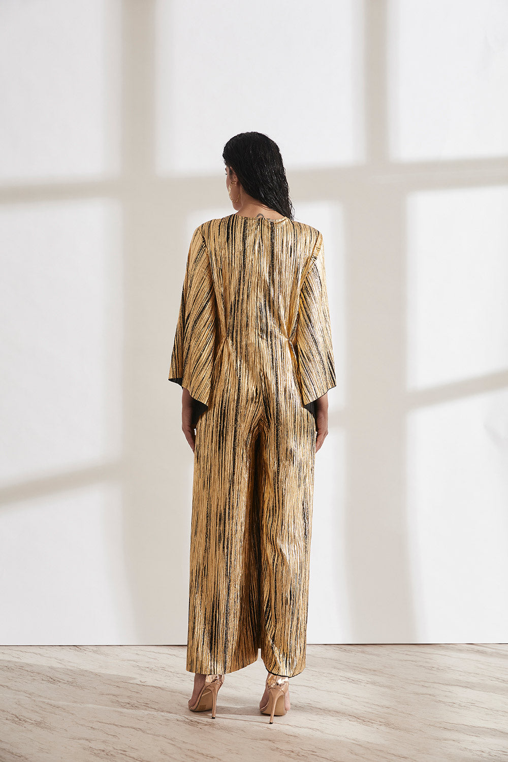 Relaxed fit jumpsuit in our Gold 11 fabric for festivities when you don't want to dress up. Our Kaftan Jumpsuit features a pleated detail in the front gives an illusion of a narrower waist. Closes at the back with a concealed zip.
