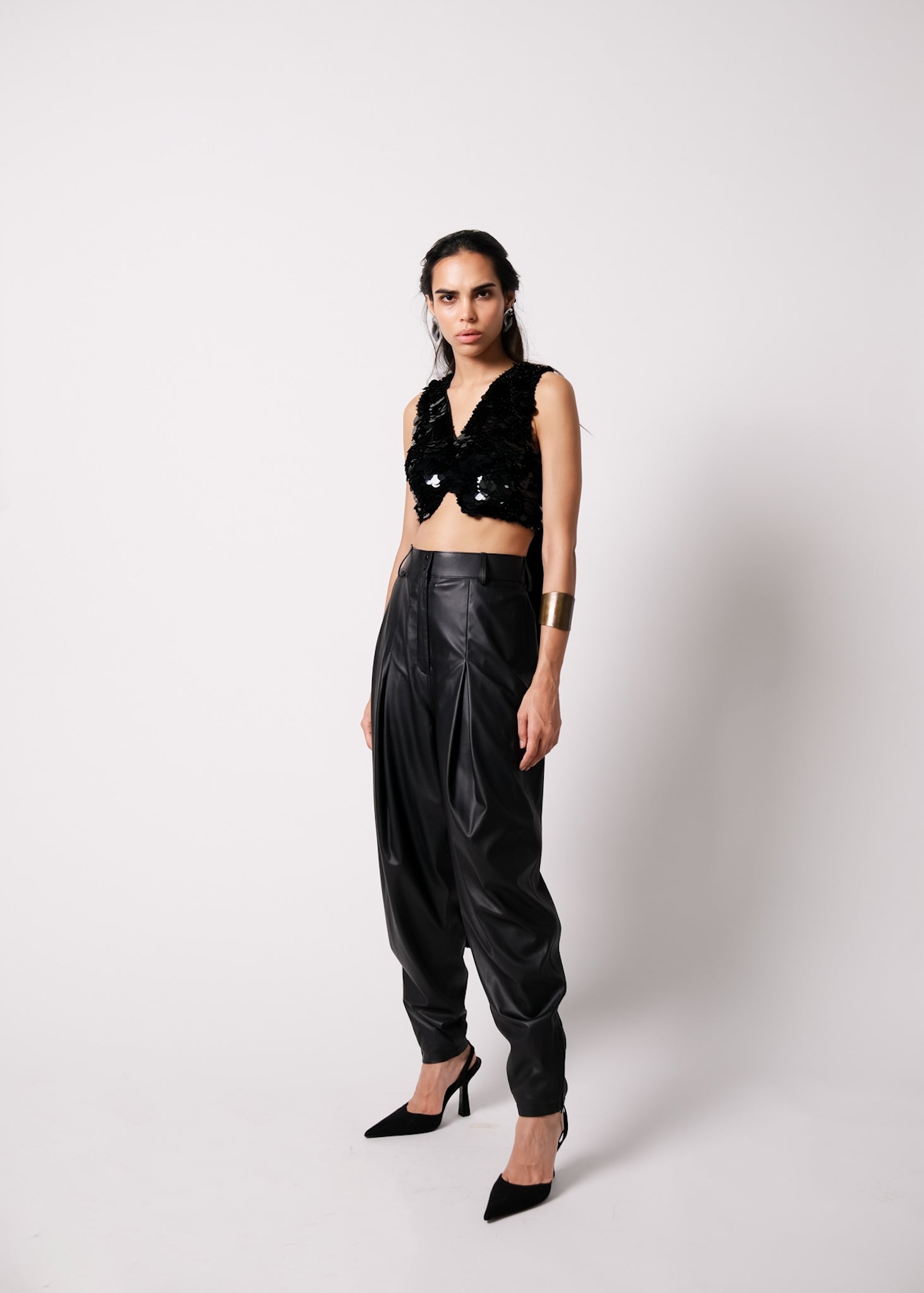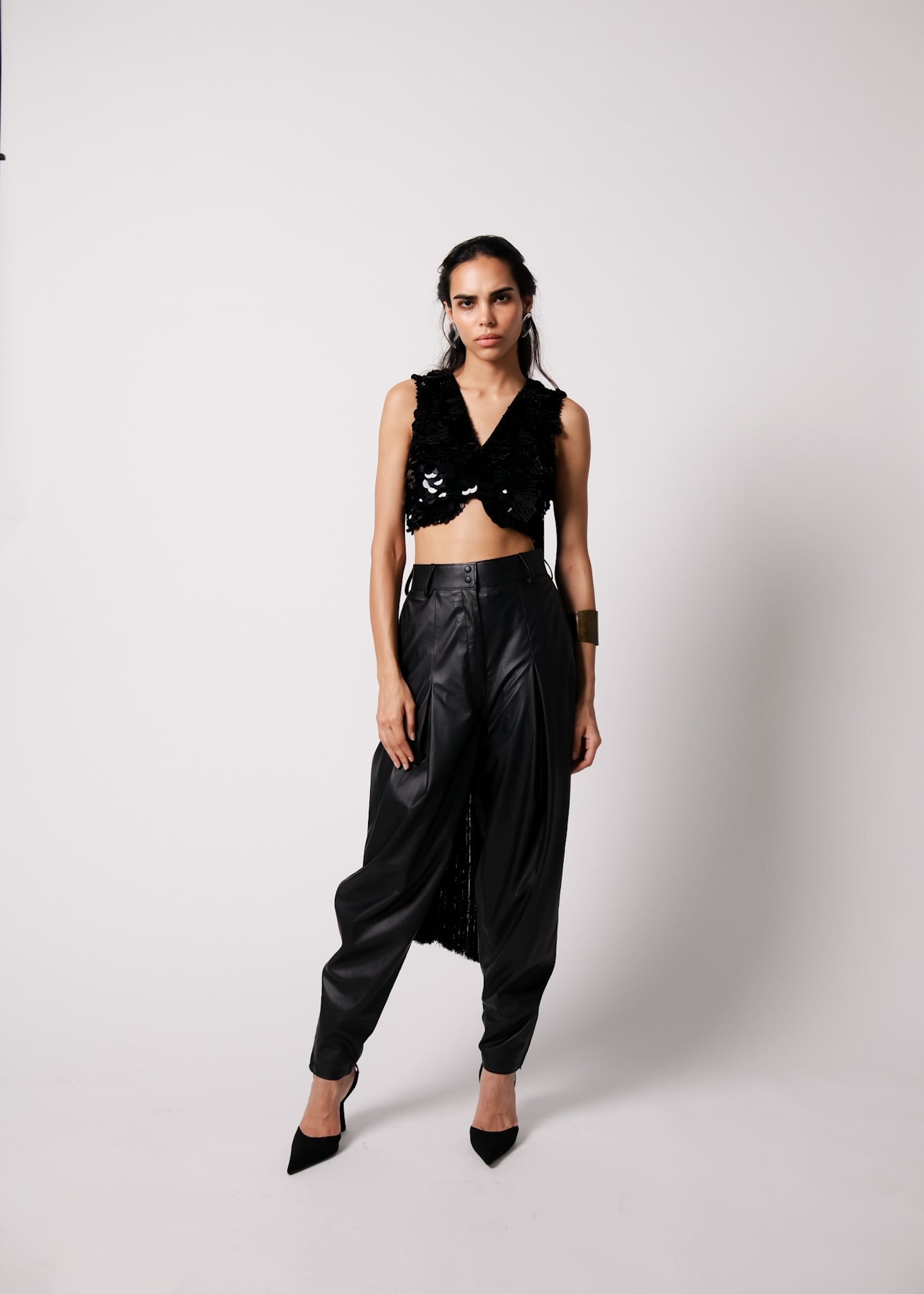 Our signature cargo pants reimagined in leather for the winter season .Flattering to the body and with pockets on both sides, it closes in the front with a zipper. This is a must have in your wardbrobe and can be taken from day to night.