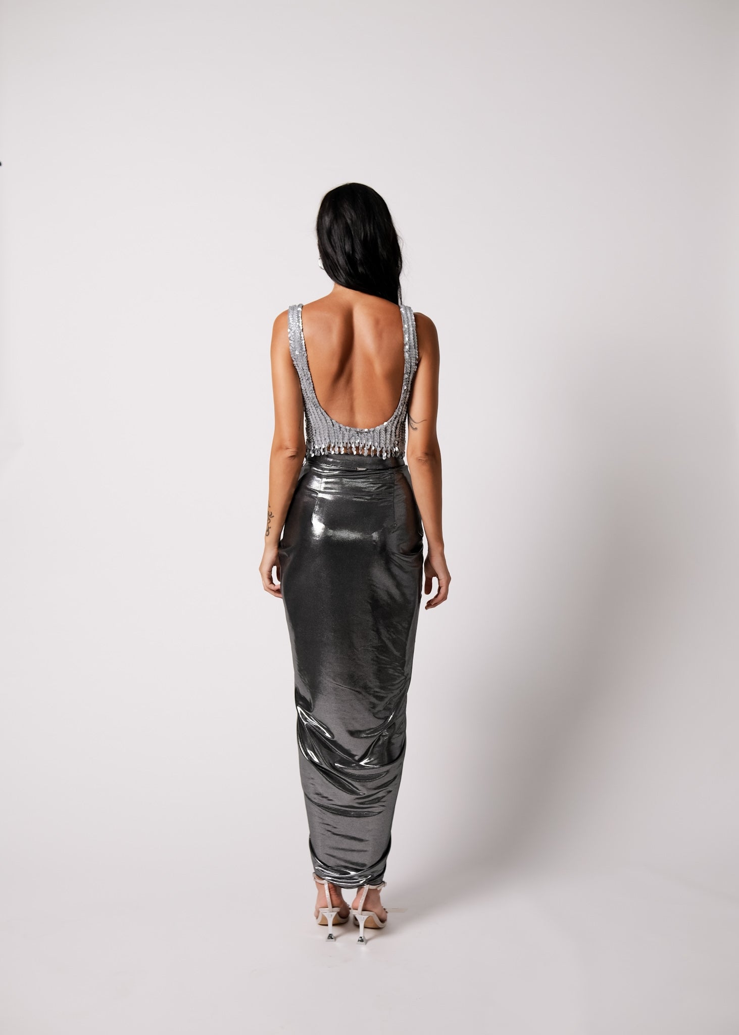 The Liquid Nora Skirt is that one sexy skirt that takes you from day to night. Cut in a slinky jersey that feels like liquid on your body, the skirt is universally flattering for all body types. Wear it with a white tee for a fun day look or a sexy blouse for the night. Closes on the side with a concealed zip and has a slit down the center.