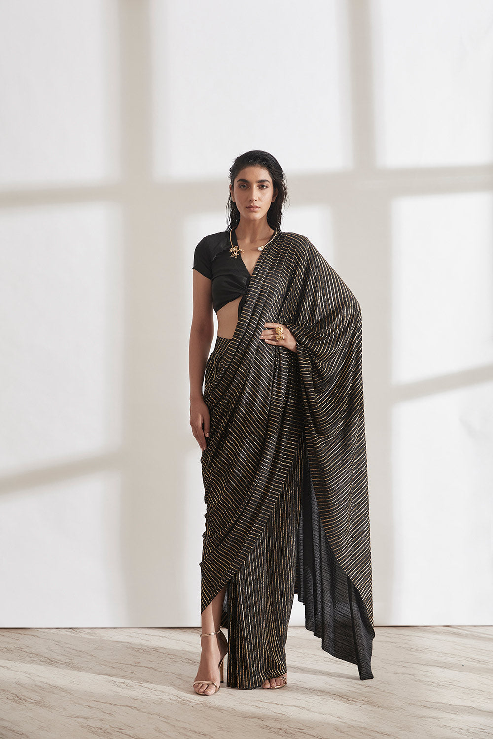 Our signature Metallic 2.0 Sari comes with a built in petticoat. Lightweight, fuss free and easy to wear, it’s the perfect piece to carry to destination weddings.