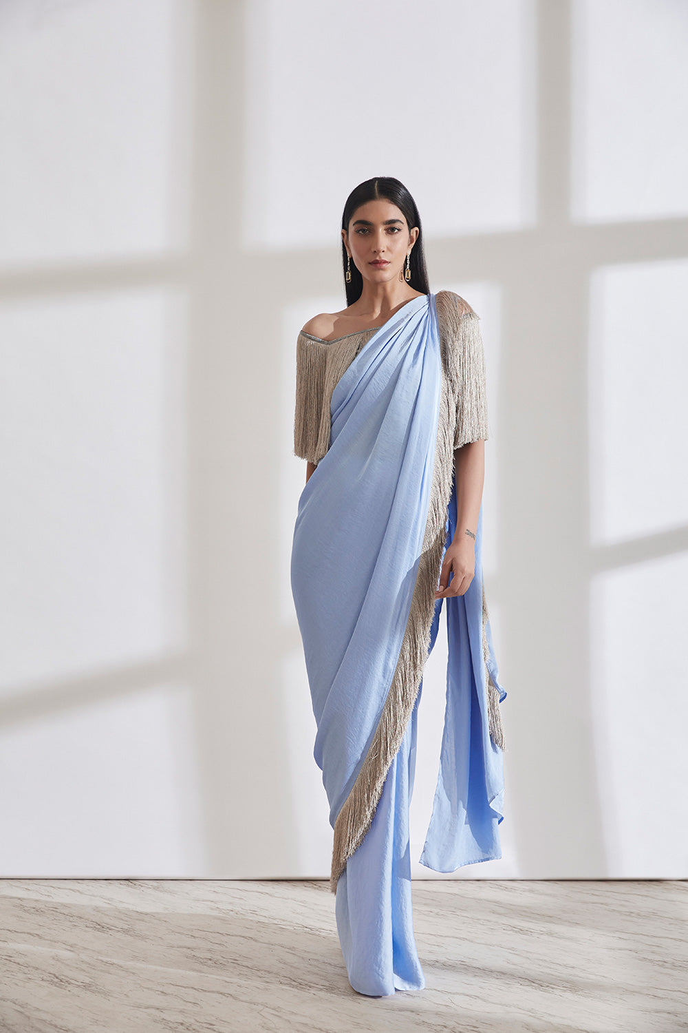 Noor Fringe Sari with Off Shoulder Fringe Top