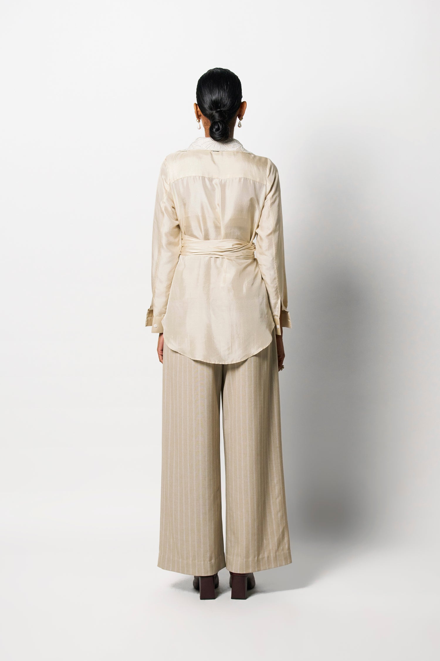 This elegant belt is beautifully made with beads and pearl drops. It features four delicate strings that sit comfortably on your waist and fastens with a secure dog hook on the side. Perfect to wear over saris, skirts or pair it up with our Latte pants to add a touch of glam and detailed charm.