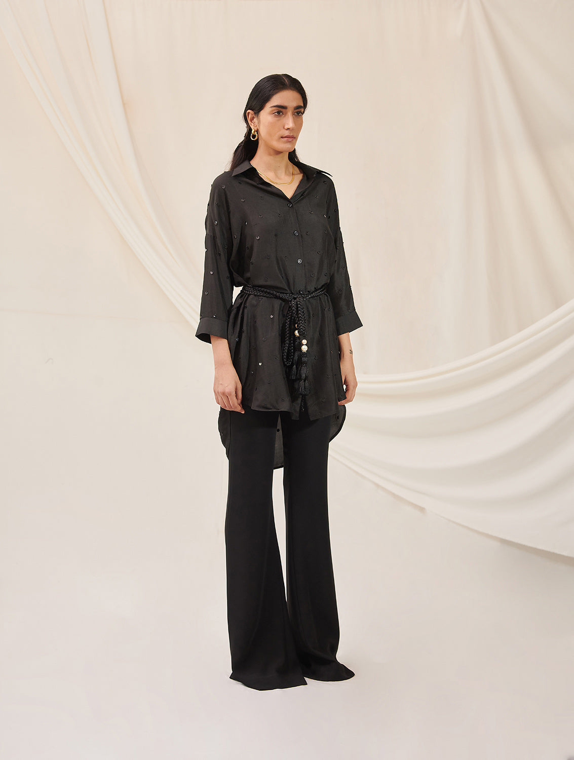Braided Rope Belt with a hand embroidered pearl details that can be wrap around the waist and styled over multiple options.