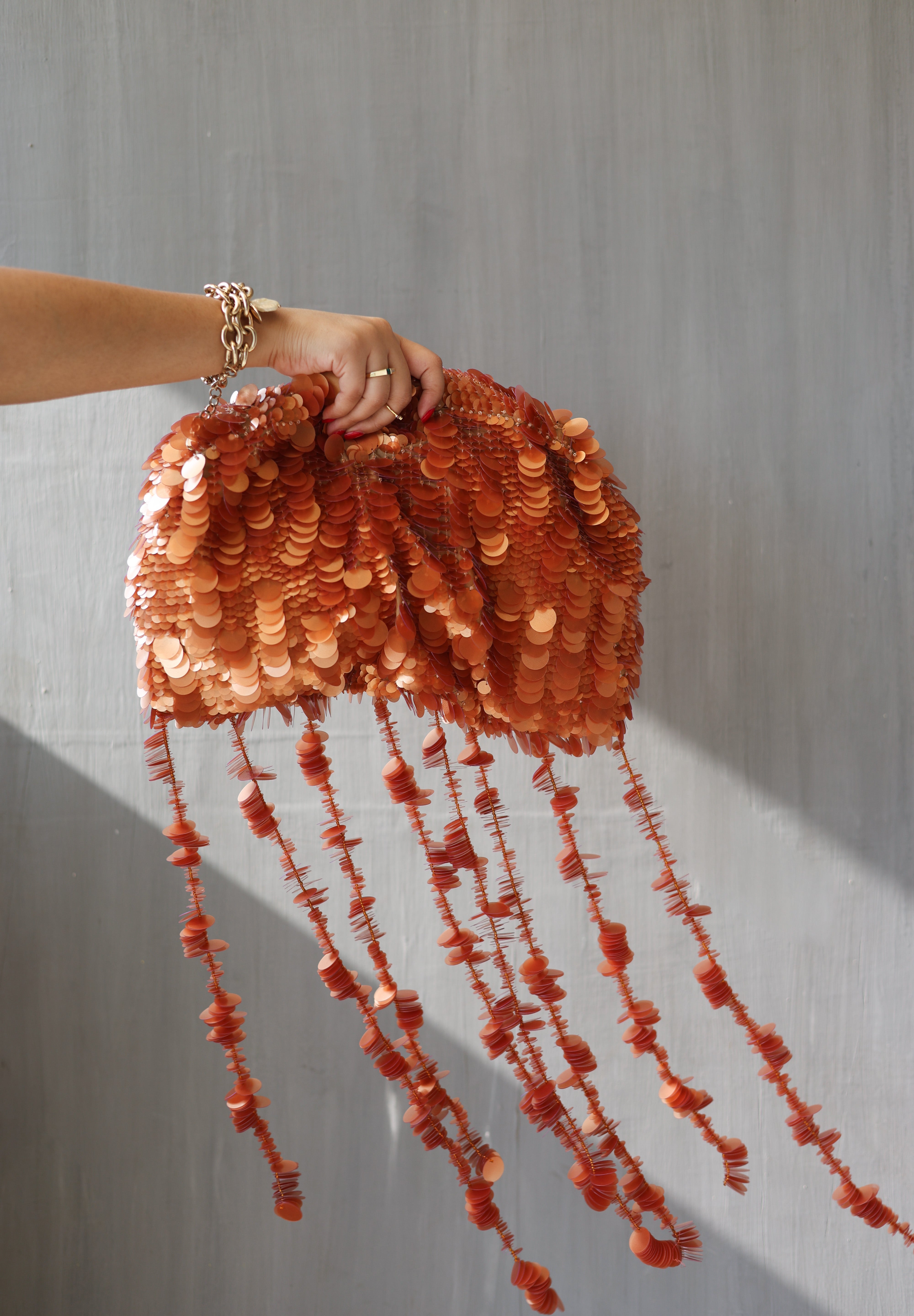 Our Sequa Clutch bag is a perfect go to for this festive season .Hand embroidered with our Red sequin of two different sizes . With a beautiful tassel detail which will get all eyes on you.
