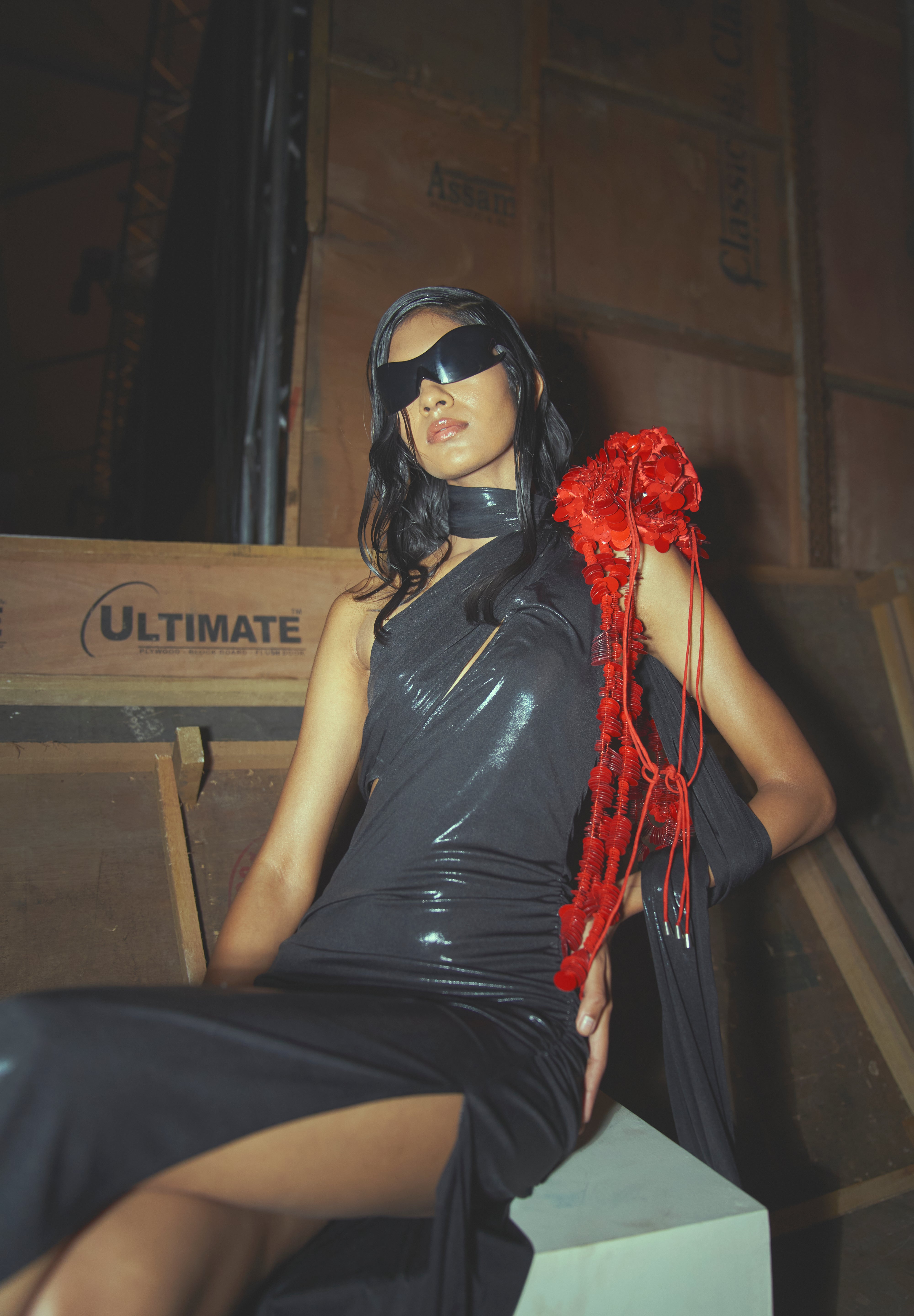 Our X Polti bag is a perfect go to for this festive season . Hand embroidered with our red sequin of two different sizes . With a beautiful tassel detail which will get all eyes on you .