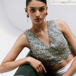 - V-neck sleeveless blouse with hand embroidery
