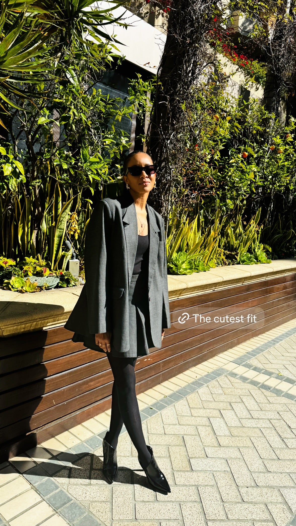 Lizzy Mathis in The Alex Blazer is an ode to classic tailoring. Cut from a comfortable suiting fabric it has an oversized fit. It is designed with notched lapels, shoulder pads for added structure and a single-breasted button fastening. pair it with our school skirt, Mini skirts for days. The School Skirt cut in a suiting features a pleated high waisted skirt with inbuilt shorts. It is mid thigh length and closes on the side with a concealed zipper. Wear yours with a shirt tucked in or a tee for easier days.