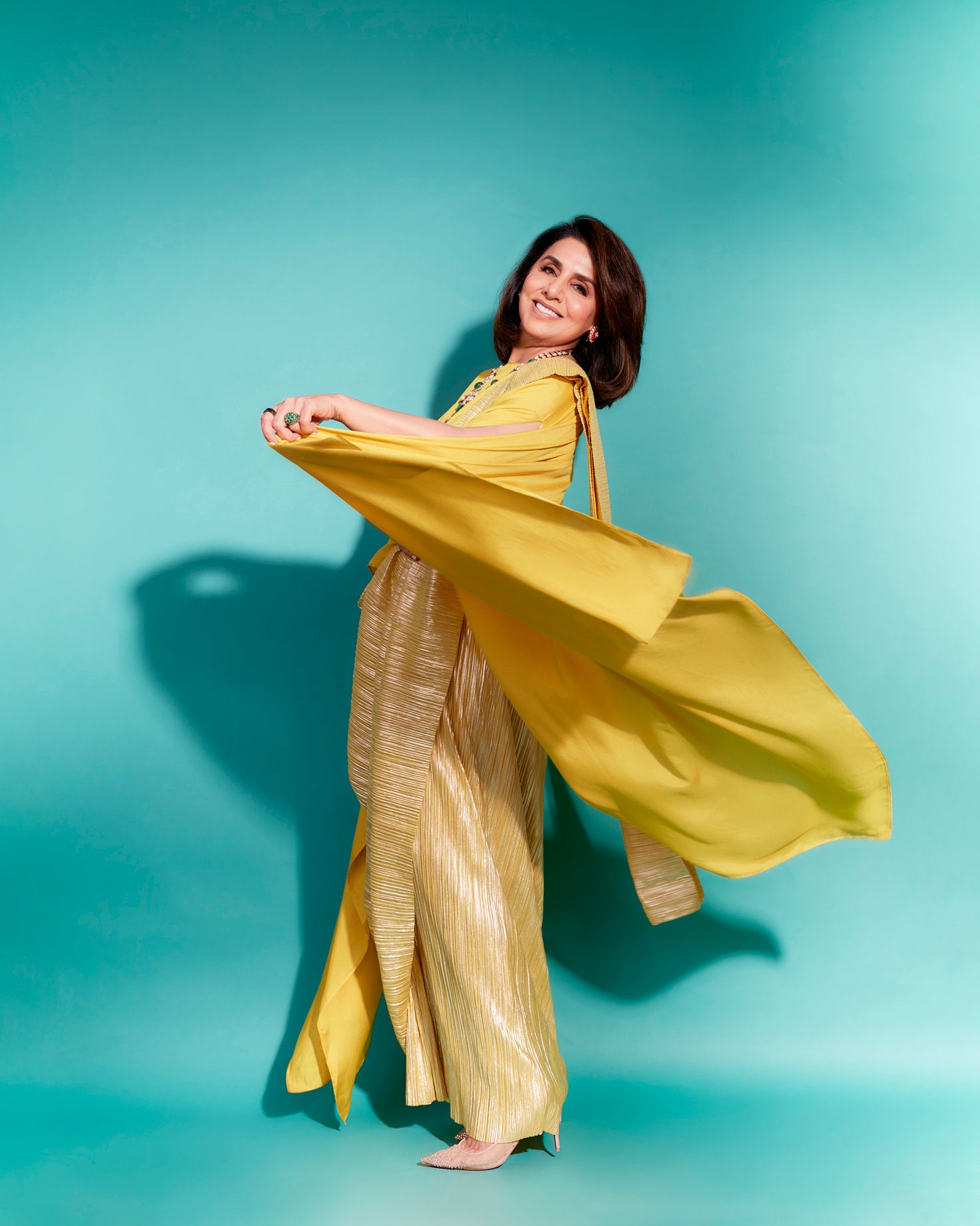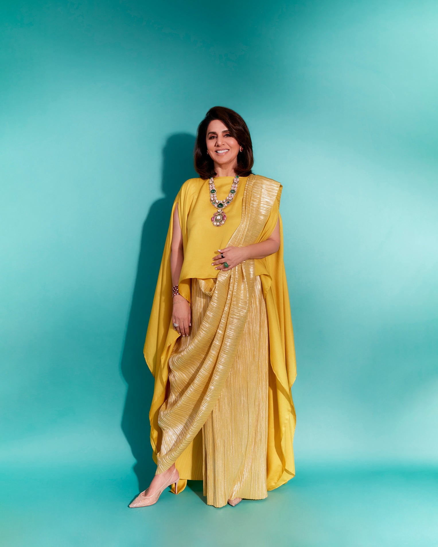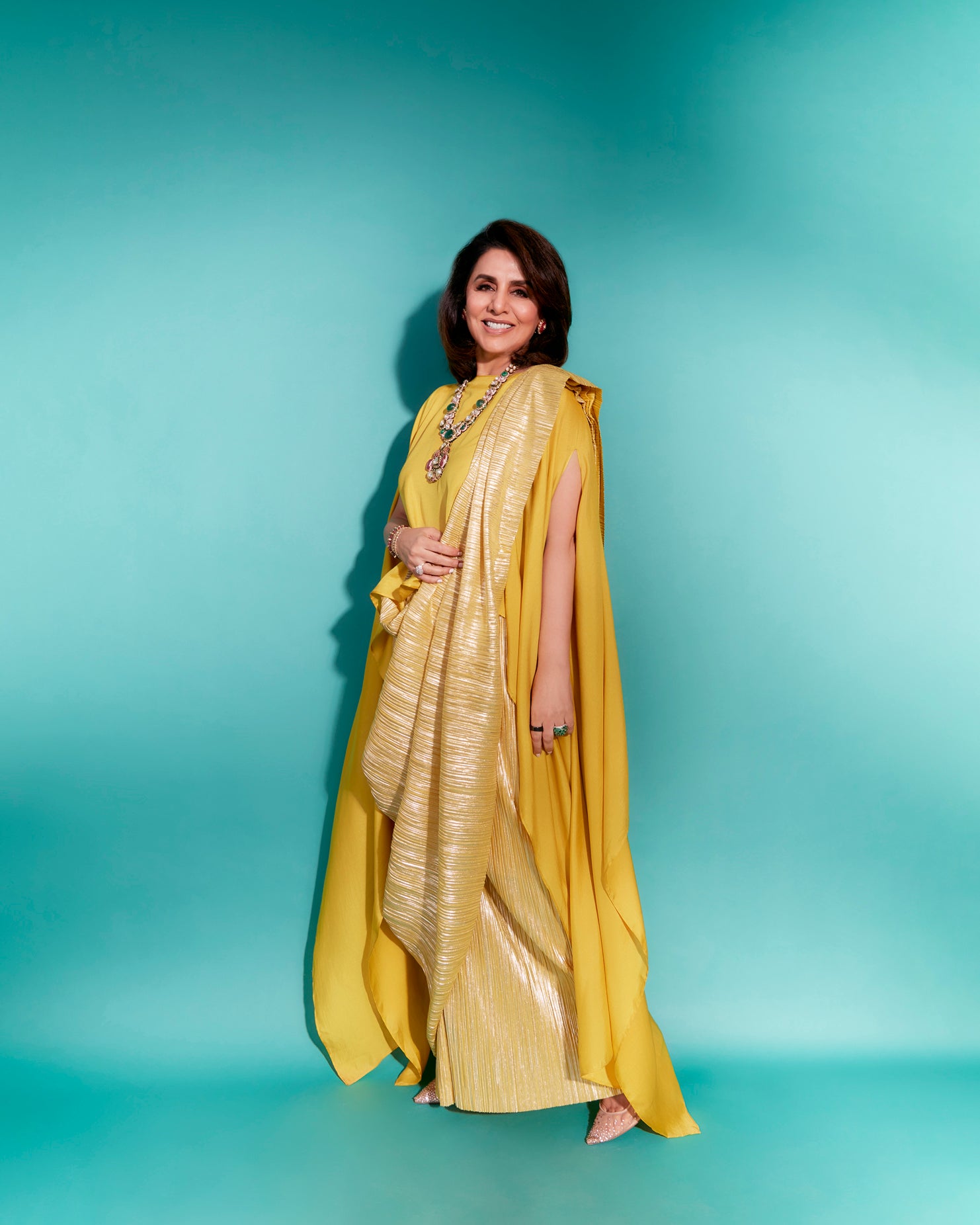 Neetu Kapoor in Metallic 2.0 Sari with SK Cape