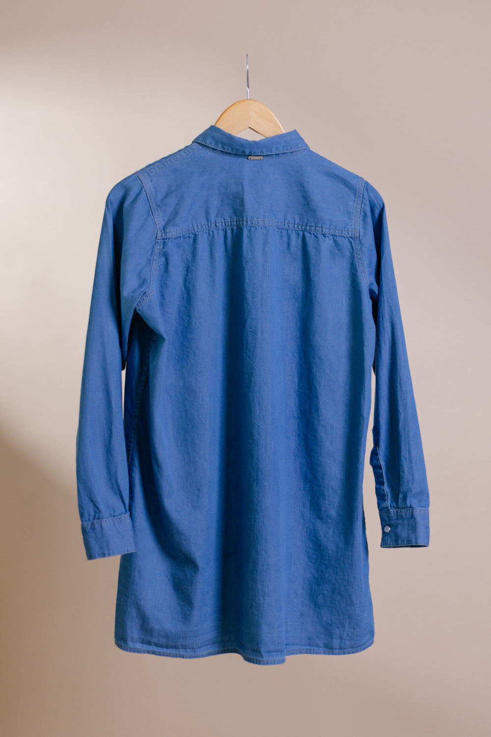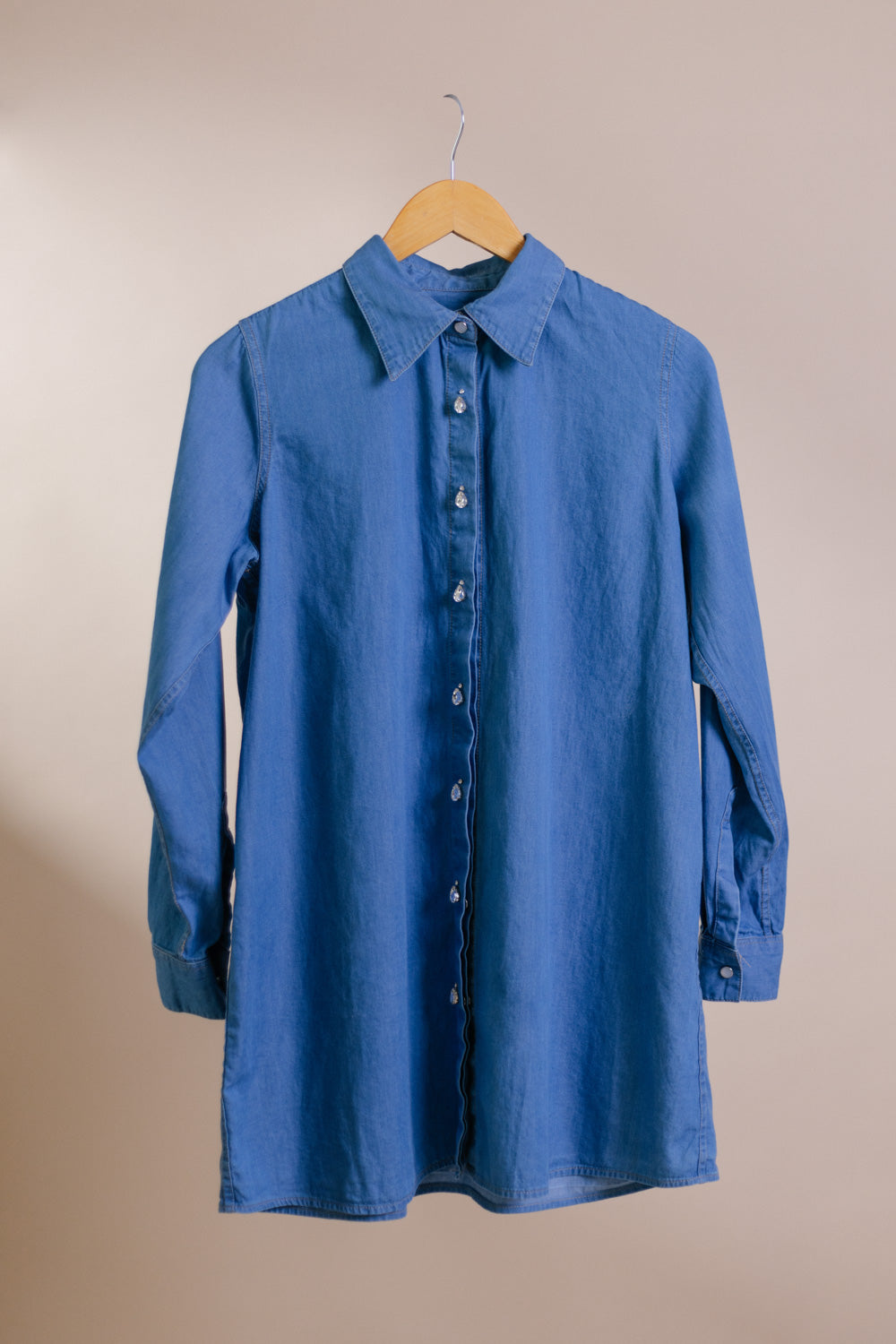 Your classic denim shirt taken up a notch. The Zoey Denim Shirt is a relaxed fit shirt featuring crystal drop embroidered buttons on the placket front. The shirt has long sleeves with buttoned cuffs. Wear it with your favourite denims for a cool denim on denim look.