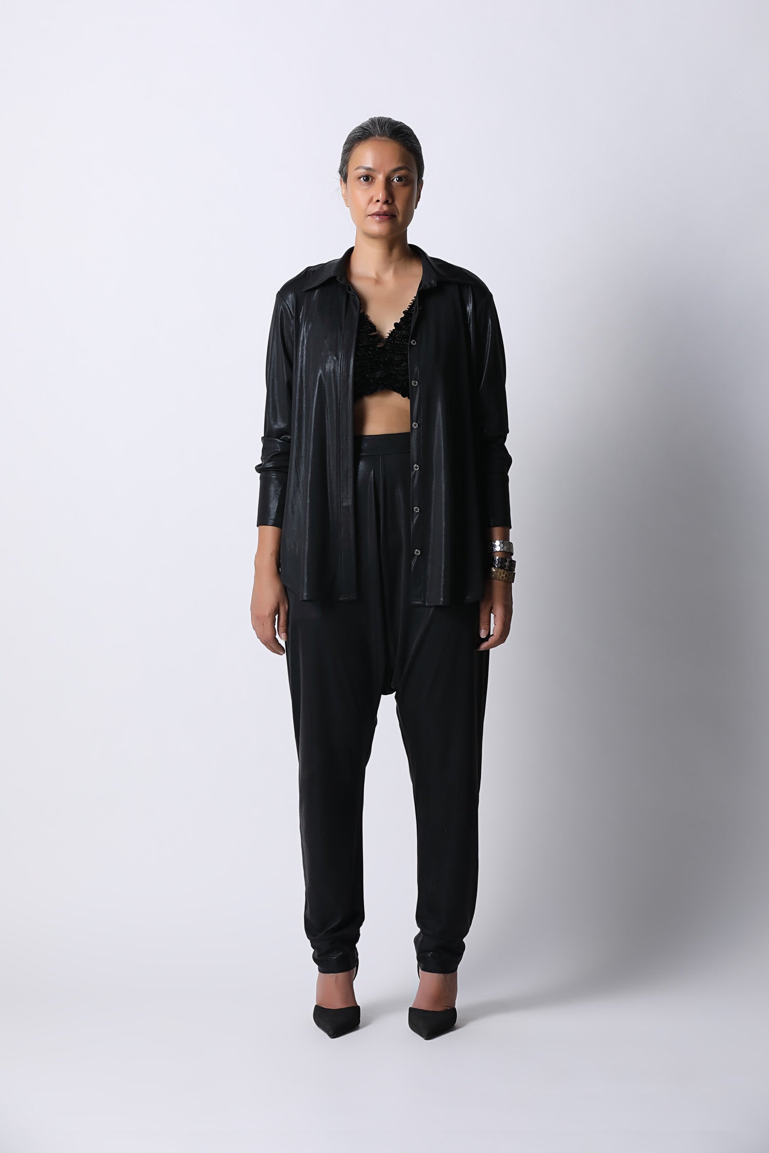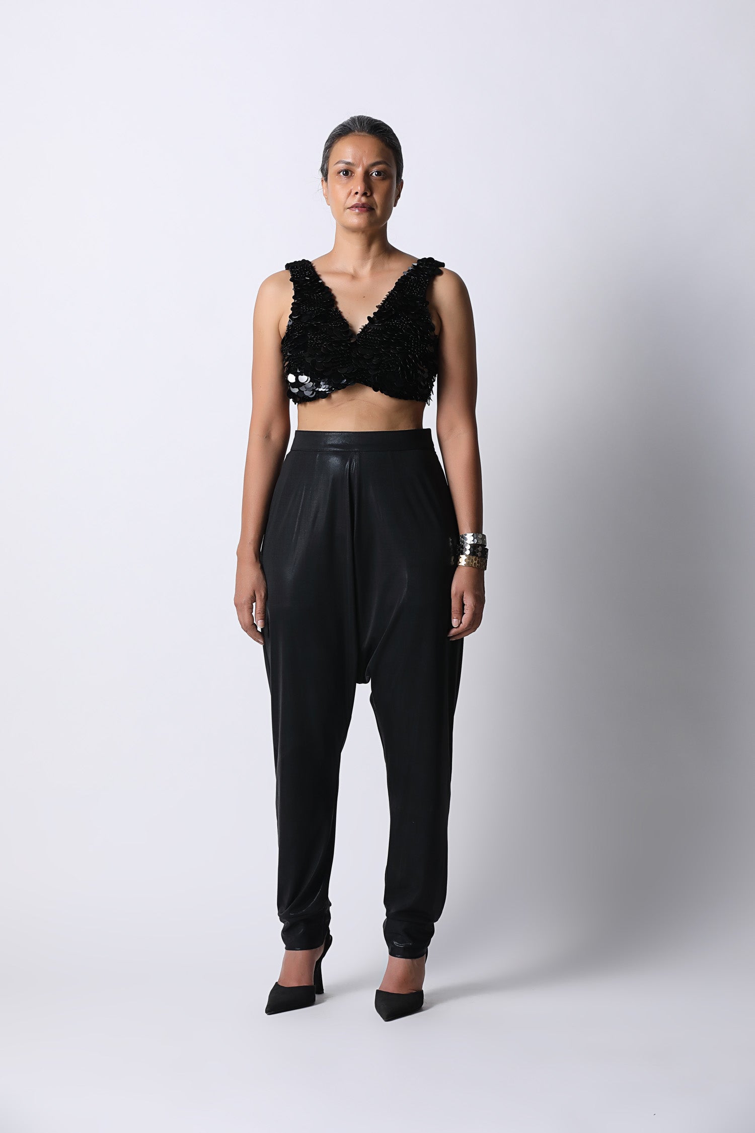 When comfort meets luxe. The Jamilah Pants are relaxed fit pants that comes with a dropped crotch style and a shaped bottom hem. Closes on the side with a concealed zipper. Easy to dress up or down with our embellished blouses or even a tee.