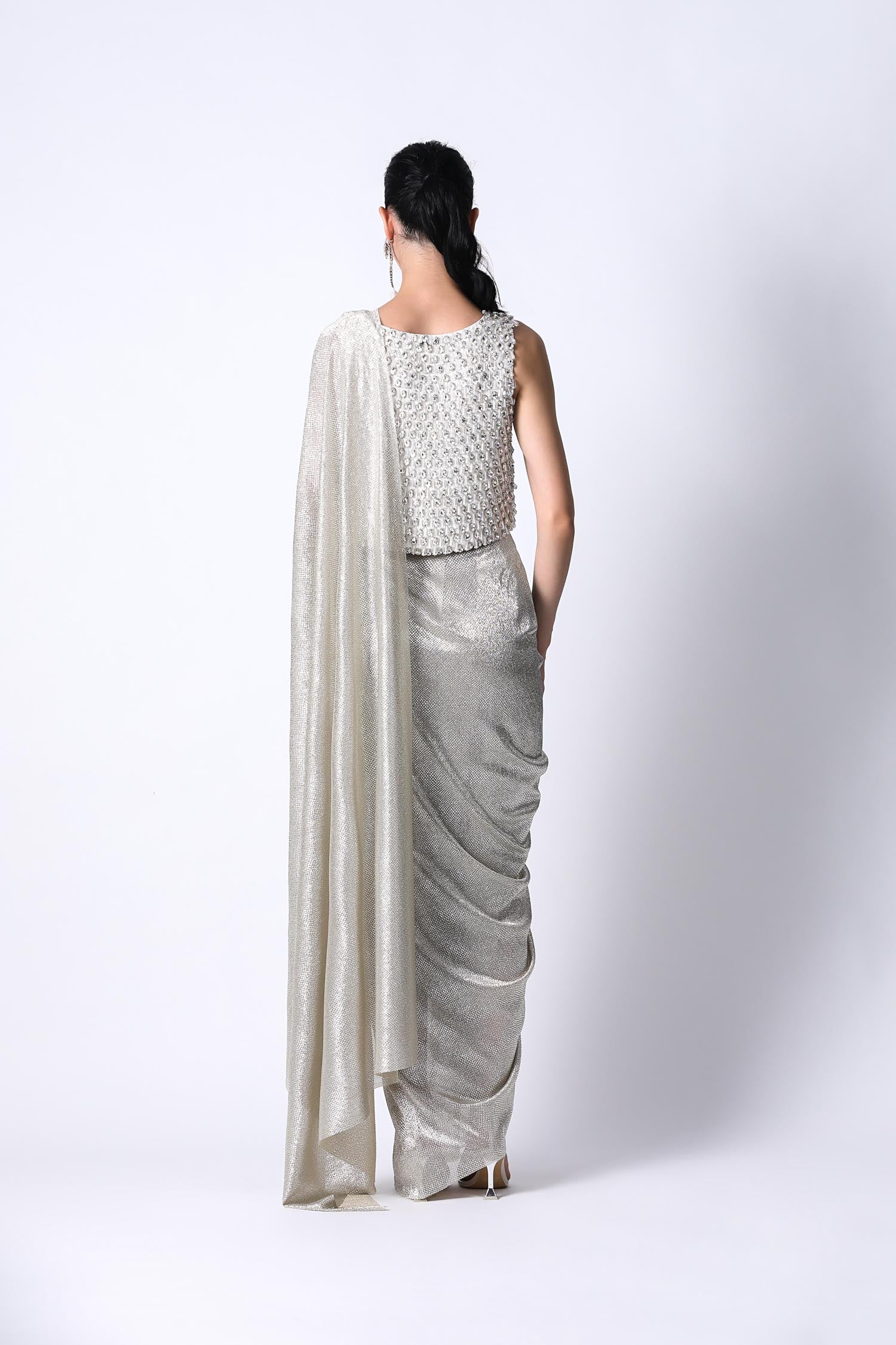 The lightest sari you will ever own. The Galaxy Sari has the right amount of sheen and is extremely fuss free.