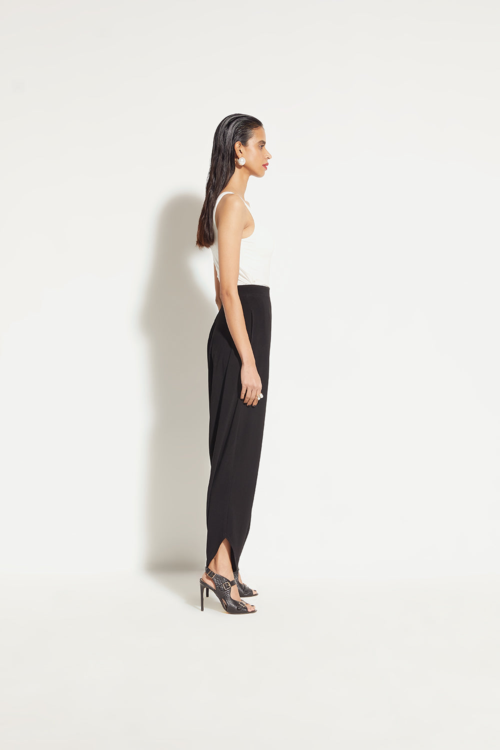 The most comfortable pants you will own. Our Lounge Pant features a relaxed fit pant that comes in a dropped crotch style, with a shaped bottom hem. Closes on the side with a concealed zipper.