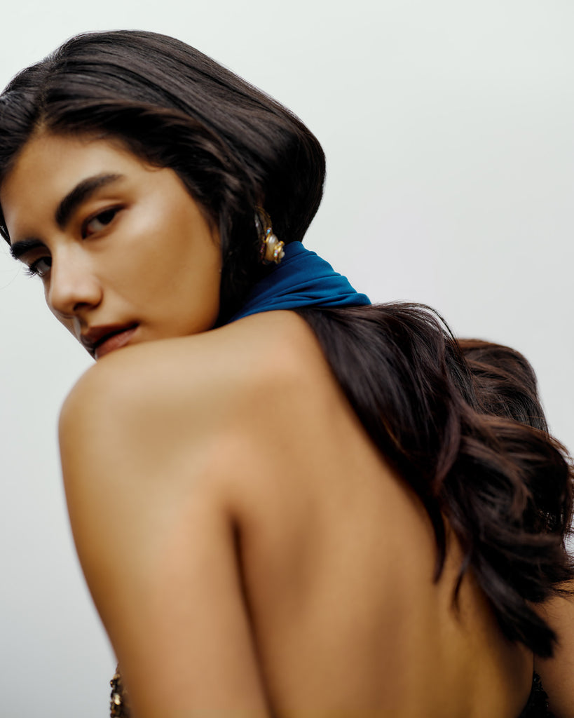 The Knot Sari embodies effortless modern glamour. Crafted in fluid stretch jersey, this contemporary interpretation of the sari blends movement and structure with signature precision draping. The asymmetrical Knot detail on the waist creates a bold, sculptural line, while the fabric’s natural sheen enhances its luxurious depth and flow.