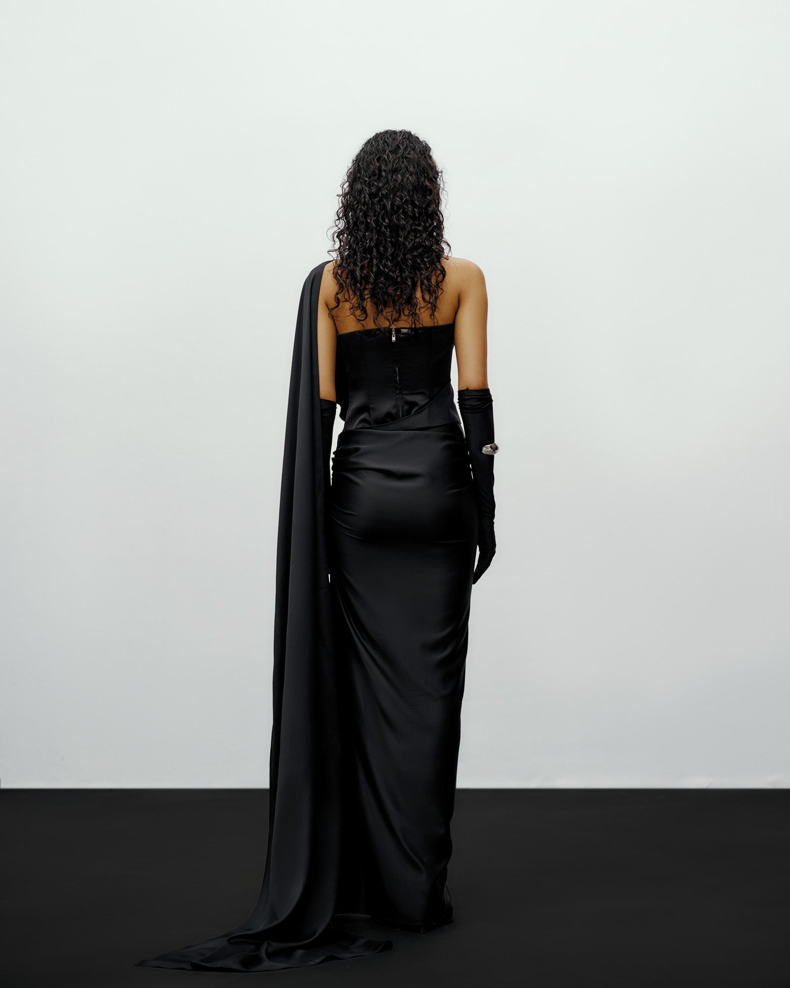 Elevate your wardrobe with our sculpted satin strapless corset, a statement piece designed for bold elegance. Crafted from premium crepe, this corset features a structured sweetheart neckline that beautifully accentuates your silhouette. The fitted bodice includes builtin boning for shape and support, while the subtle embroidery detailing under the bust adds a touch of modern edge and luxury. A sleek back zipper ensures a secure and seamless fit.