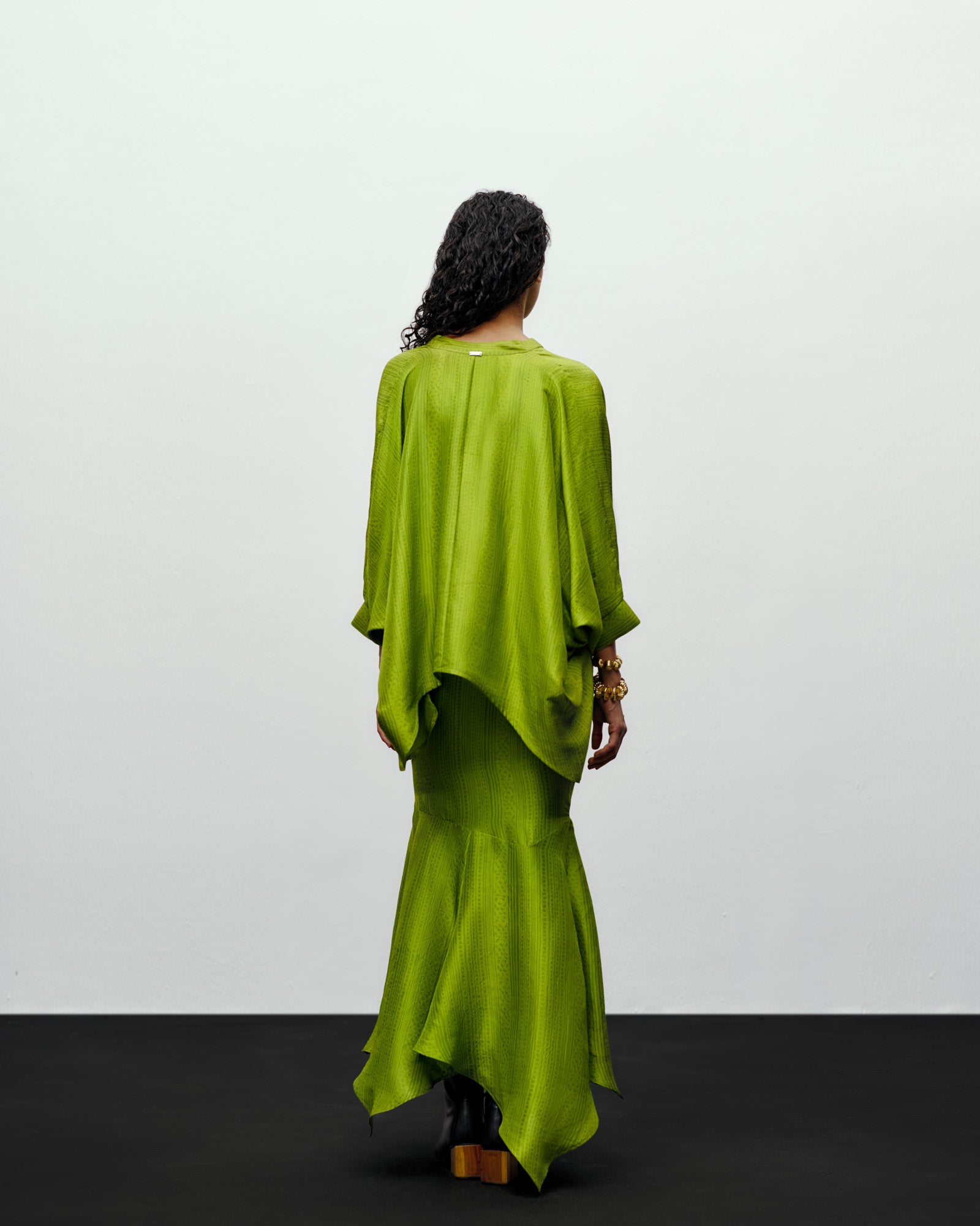Striking the perfect balance between fluidity and form, the Zin Shirt redefines contemporary elegance. The free-flowing shirt features exaggerated sleeves and a relaxed silhouette in our Heather print that drapes effortlessly, creating a sense of movement and ease. Designed for the modern muse who values both comfort and individuality, this look transitions seamlessly from day events to evening occasions.