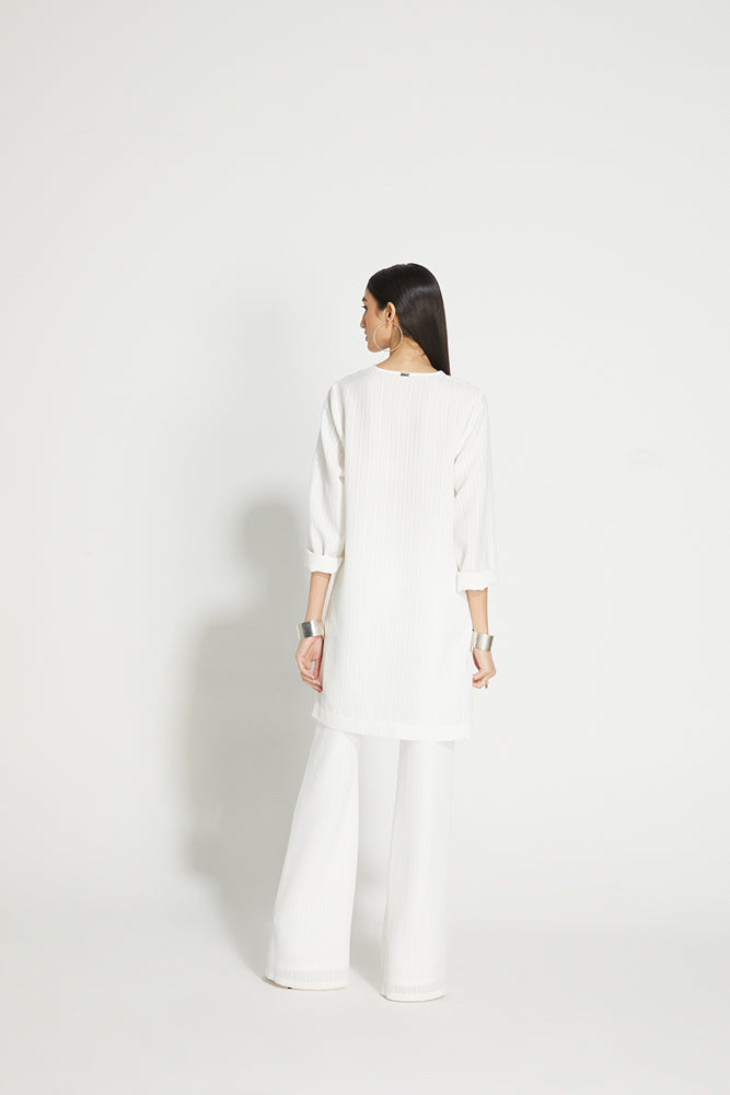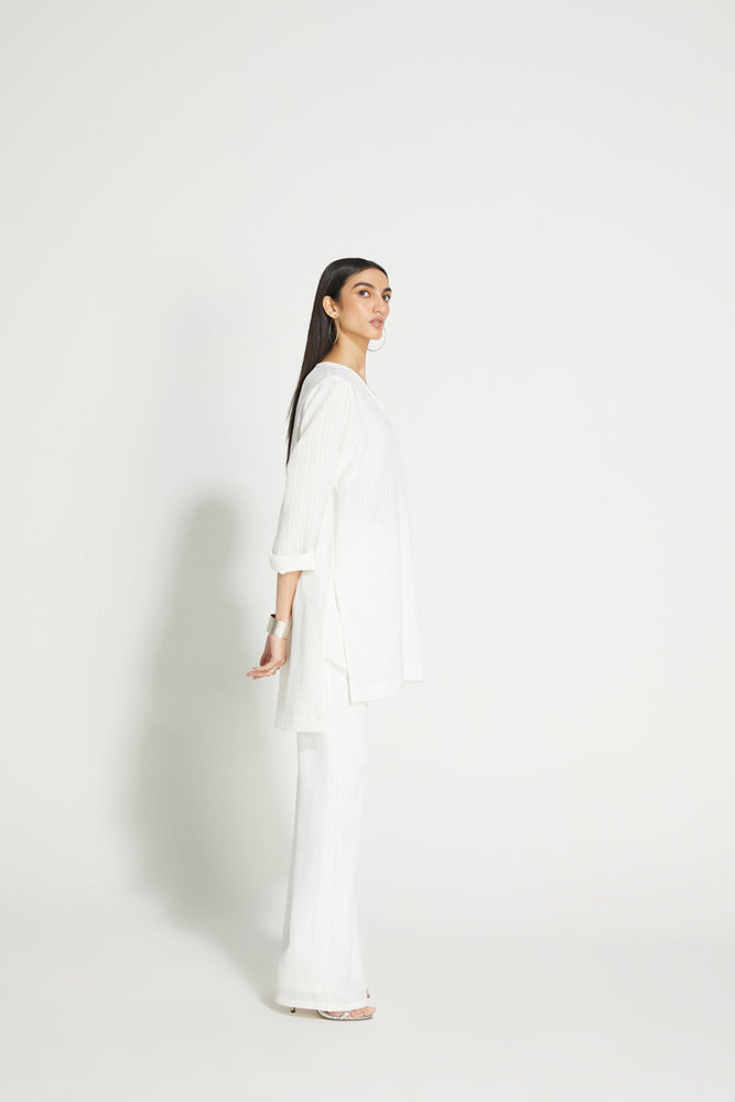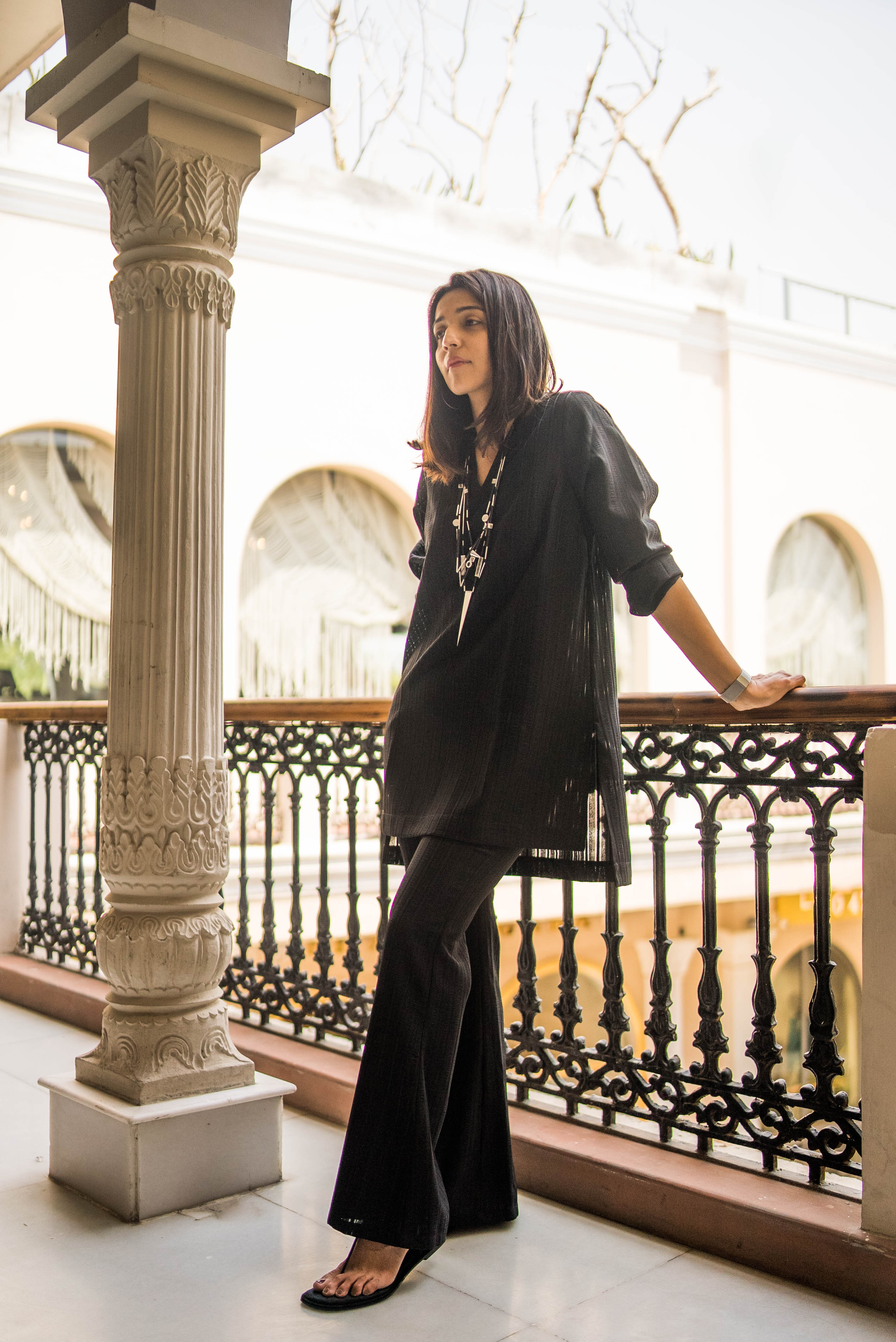 An everyday kurta set that is perfect to dress up and down. The Nausheen Kurta set includes a top that is a straight relaxed fit style with a V neck and a longer back. The pants are a tailored bootcut with a concealed zip on the side.