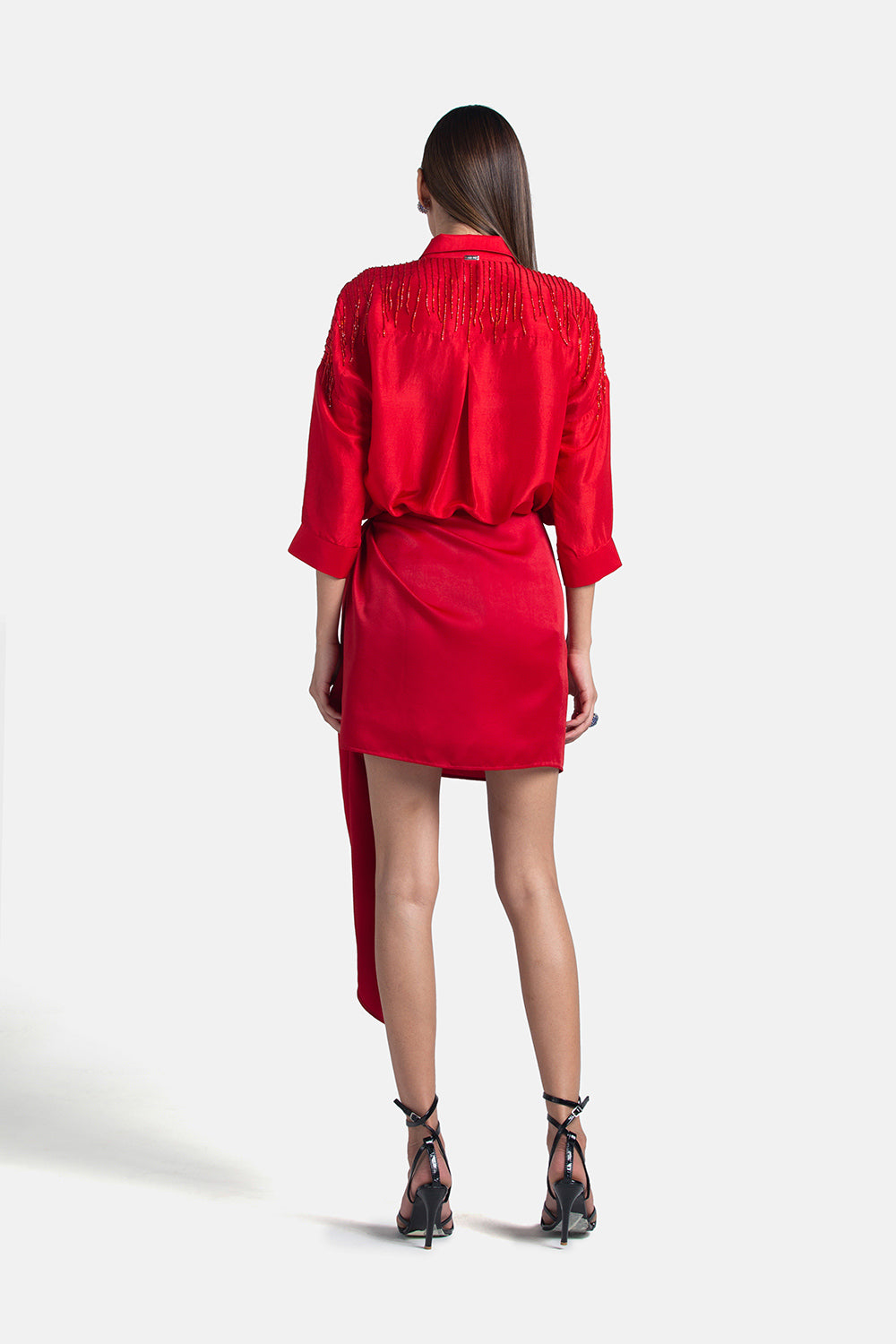 The Streamlined Shirt is a hand embroidered piece with delicate details. The strings on the shoulder are fun, flirty and give just the right amount of bling. Crafted in silk, it brings life to whatever you pair it with.