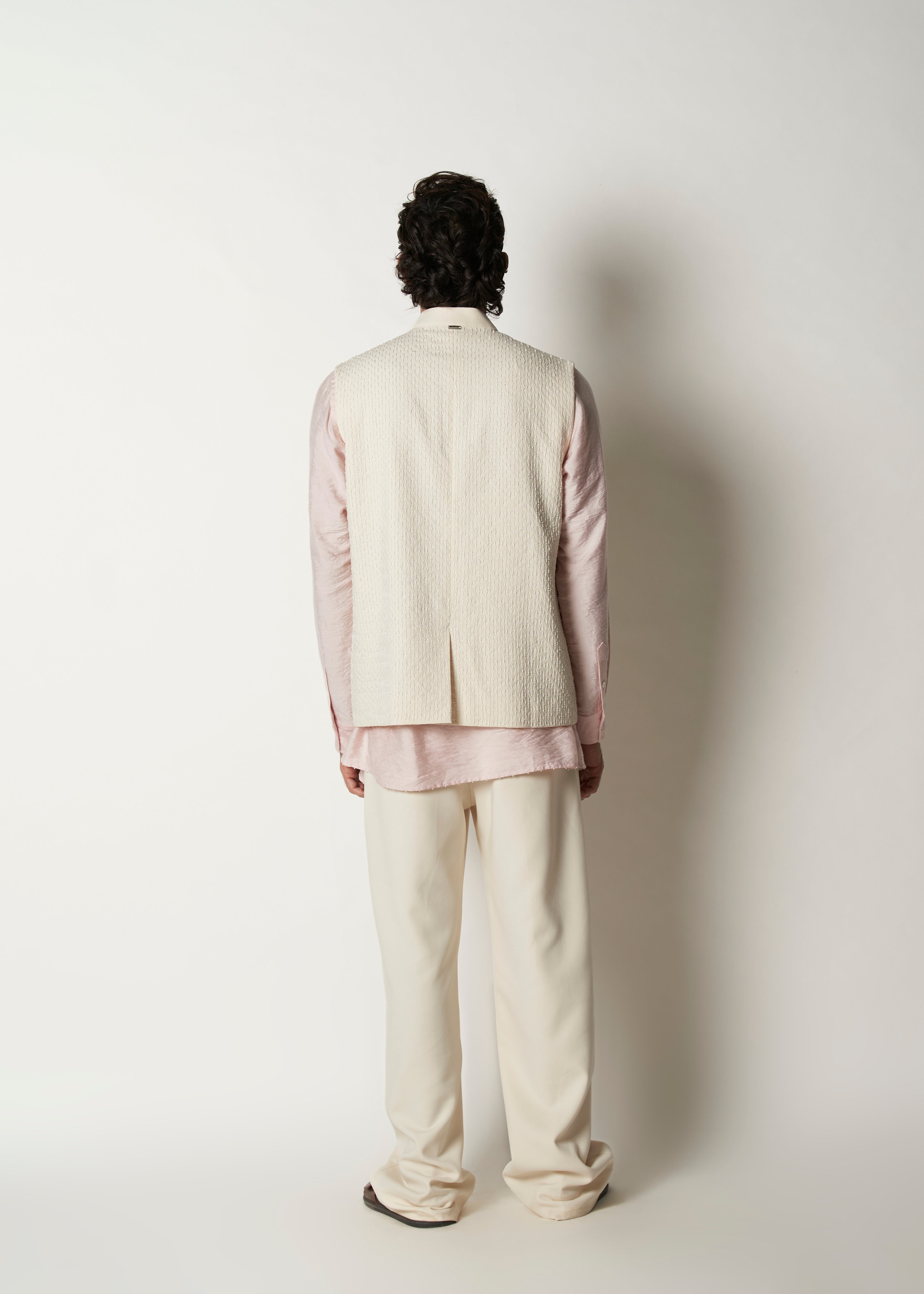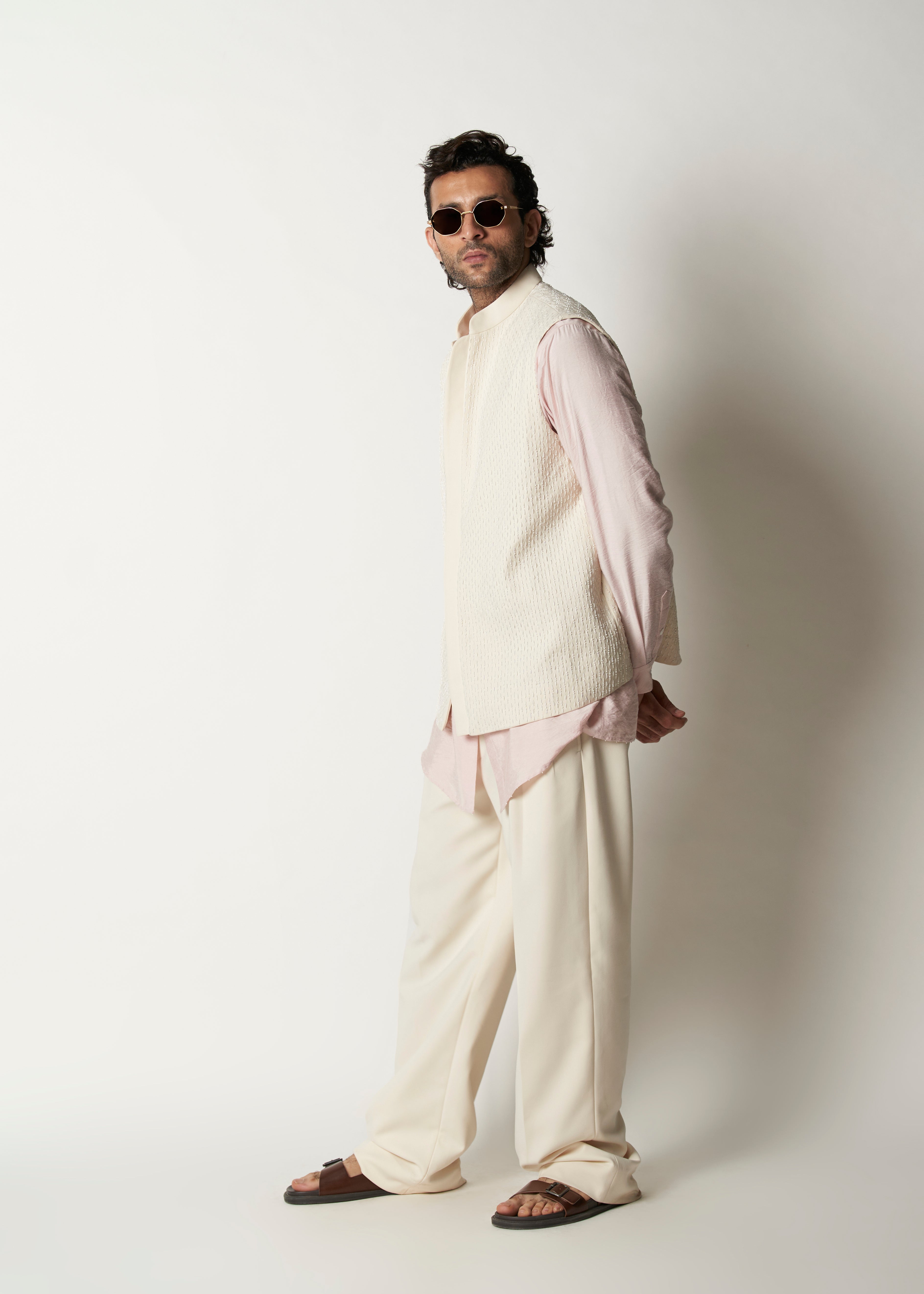 Embrace festive elegance in our AK Bundi crafted from crepe and featuring intricate threadwork and bead embroidery. Made in a relaxed fit with a mandarin collar. Pockets on the side seam complete the clean look.