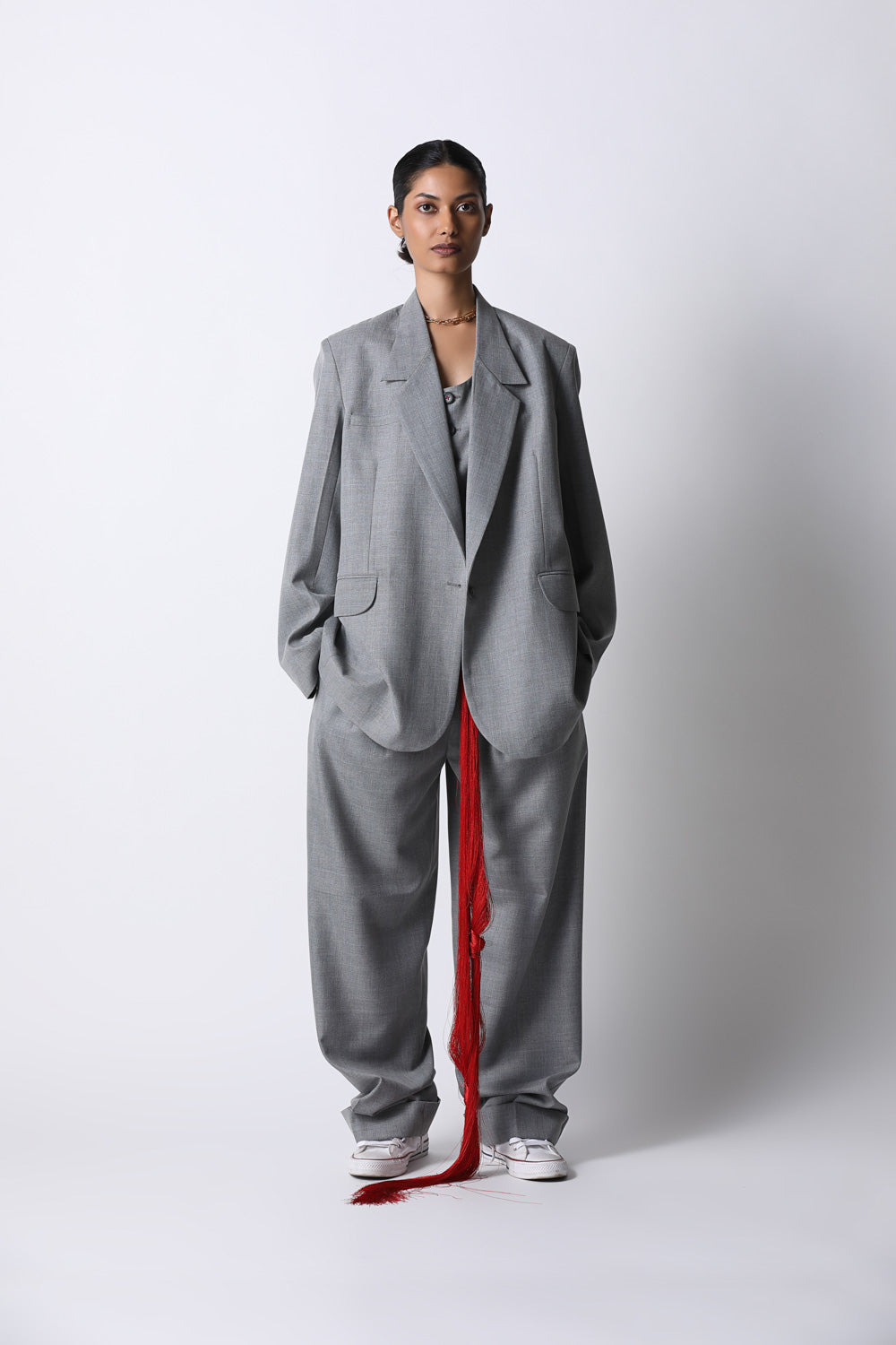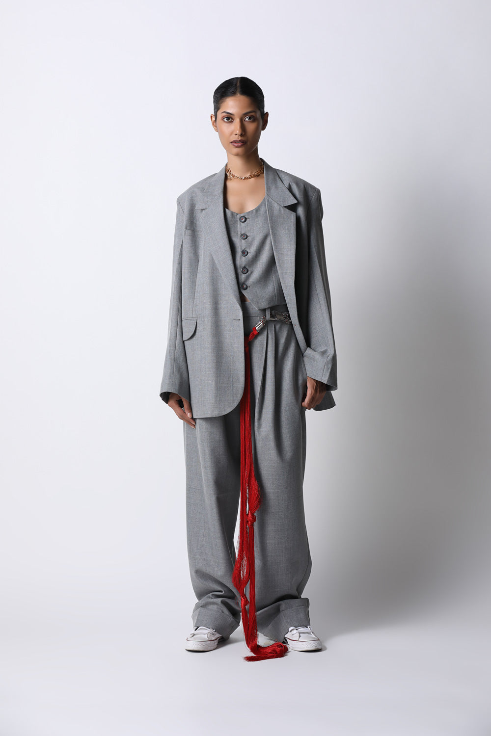The Alex Blazer is an ode to classic tailoring. Cut from a comfortable suiting fabric it has an oversized fit. It is designed with notched lapels, shoulder pads for added structure, and a single-breasted button fastening. Complete your set with our matching trousers and waistcoat or style it as a separate over your dresses or jeans.