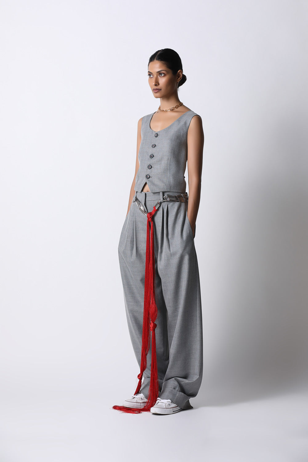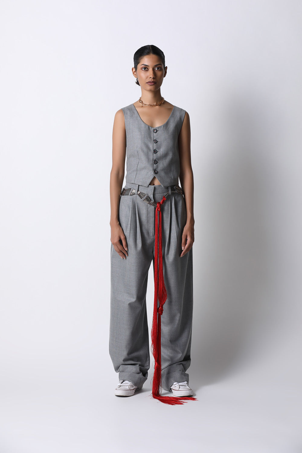 The Alex Waistcoat is an ode to classic tailoring. It is cut in a comfortable suiting fabric. Tailored with a round neck with a single-breasted front with a buttoned closure. Wear it with our tailored pants for your next pitch meeting to show them you mean business.