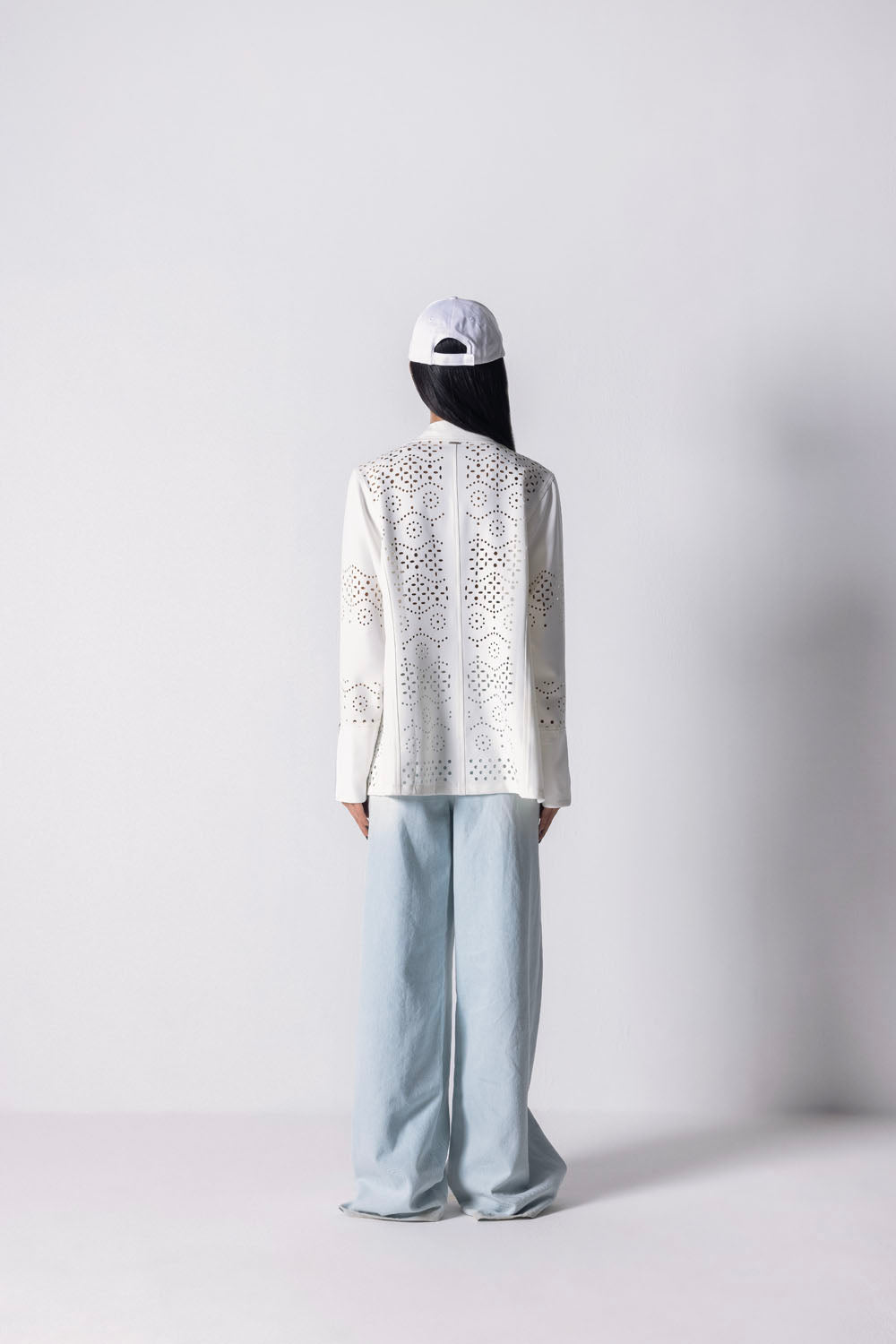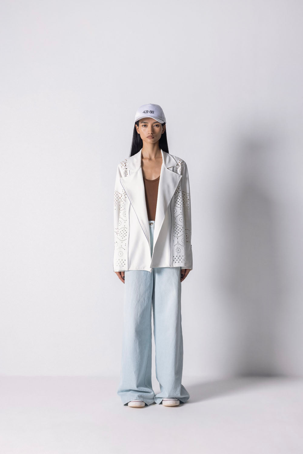 Boston Biker is a collared jacket featuring long sleeves. Featuring laser cutting in front with metal zips, laser cut, and zipper in sleeves for more ease.