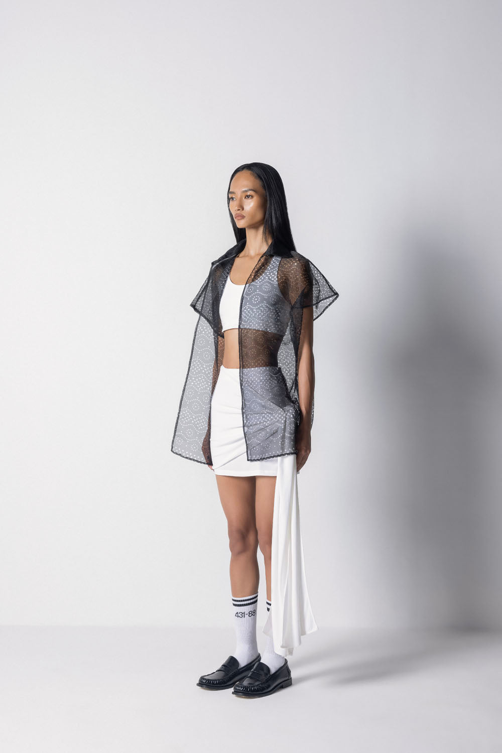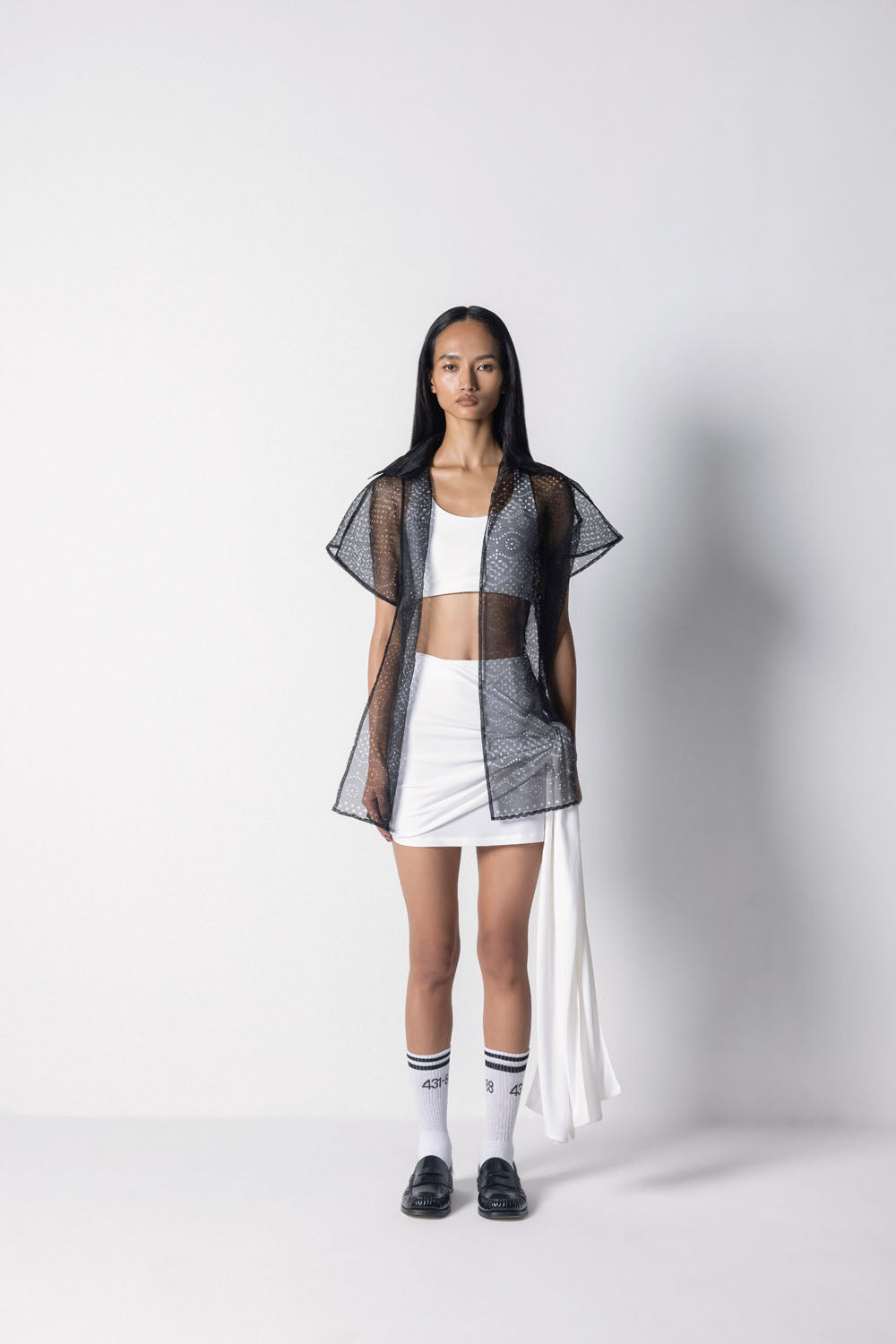 Breeze Jacket, round neck jacket with 3/4 sleeves. The laser cut on the entire jacket gives you a nice and breathable layering piece.