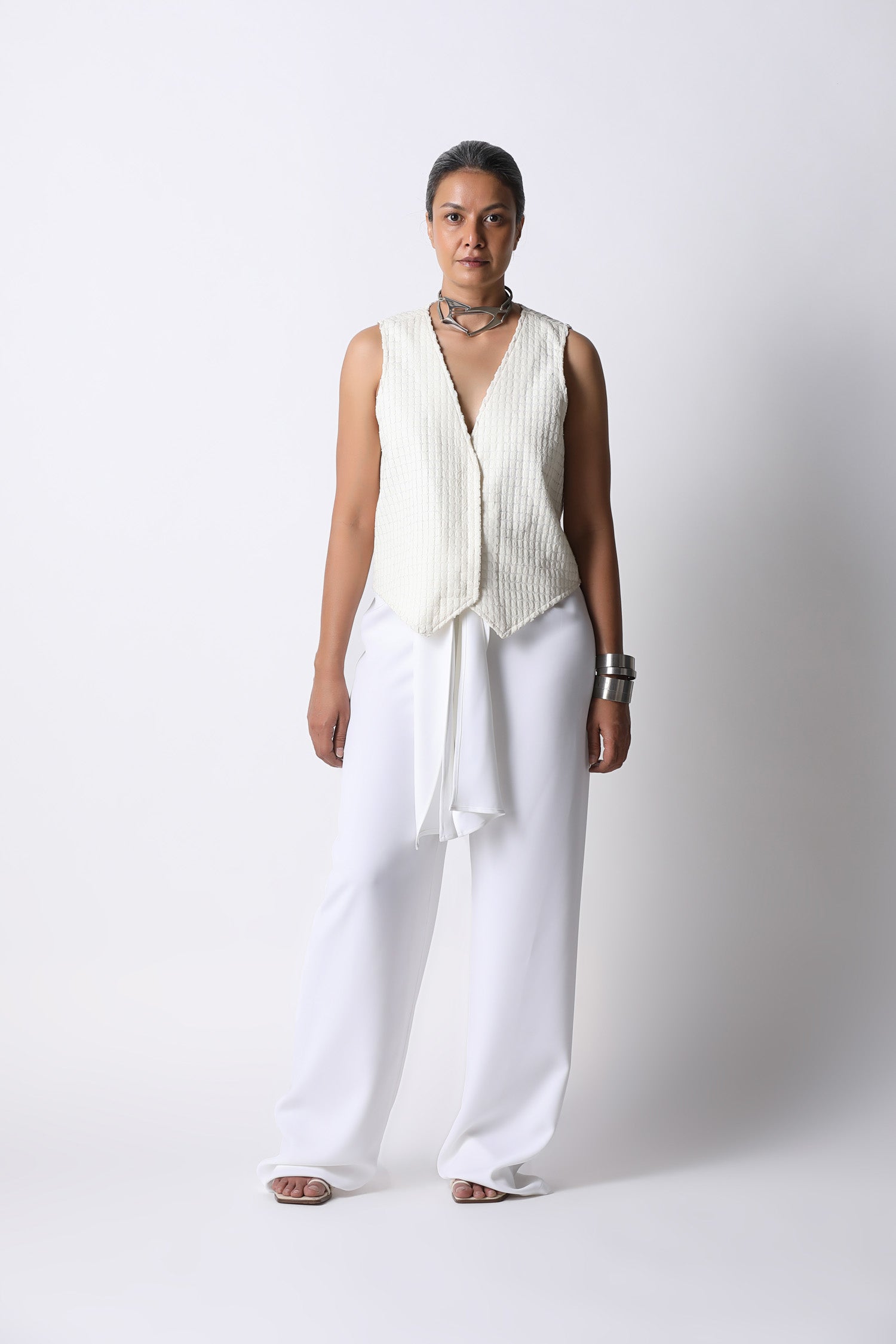 The Bubble Waistcoat is cut for a relaxed fit in a textured bubble like fabric. Front opening with a snap button closure. It is an elegant yet fun piece that can be worn as is or over your shirts as well.