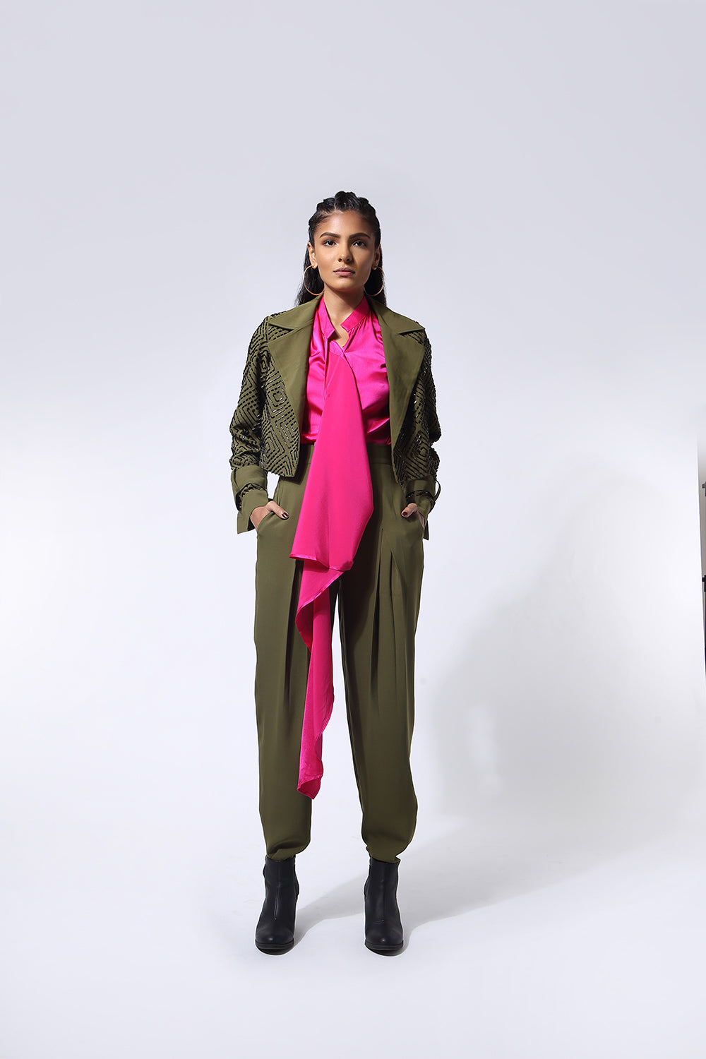 The Masai jacket is crafted with an intricate hand embroidered design. Has a structured shape and is also a great addition over a semi formal tee and jeans.