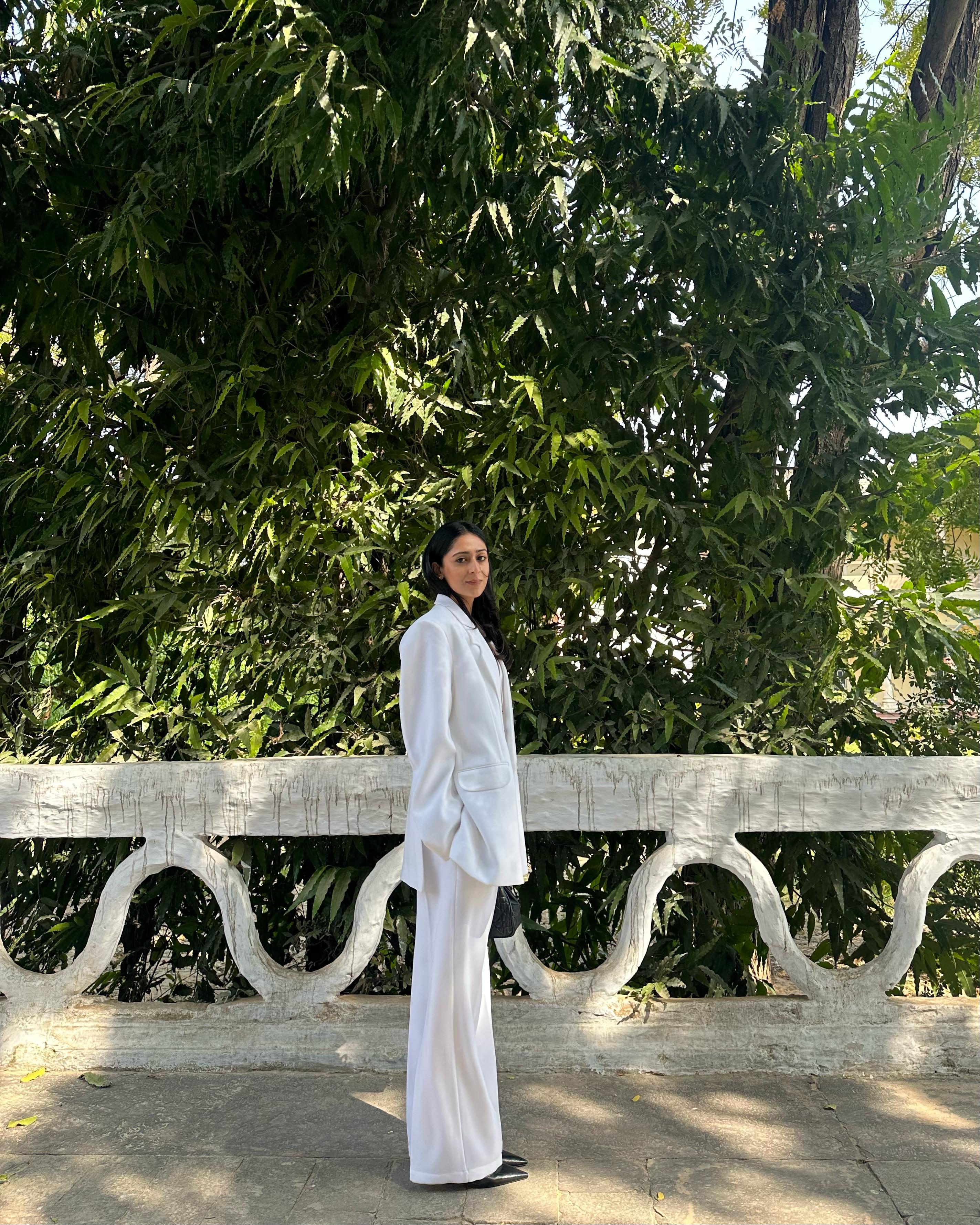 Gauravi Kumari in Tan Blazer Tan Trouser with Alex Blazer