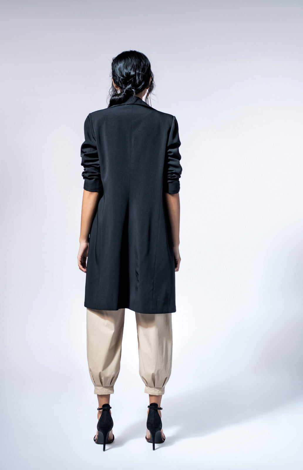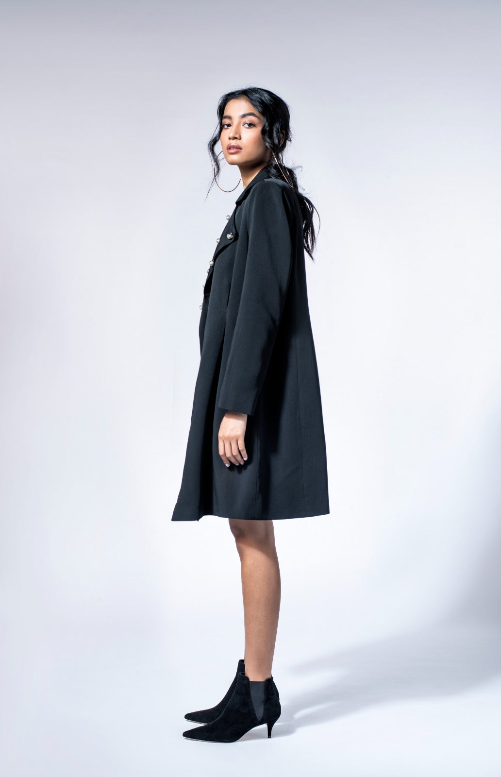 The Linda Jacket is a structured jacket that takes inspiration from the humble blazer. Strategically placed waist darts give the body a slimmer shape and the collars are adorned with Hanging Pearls.