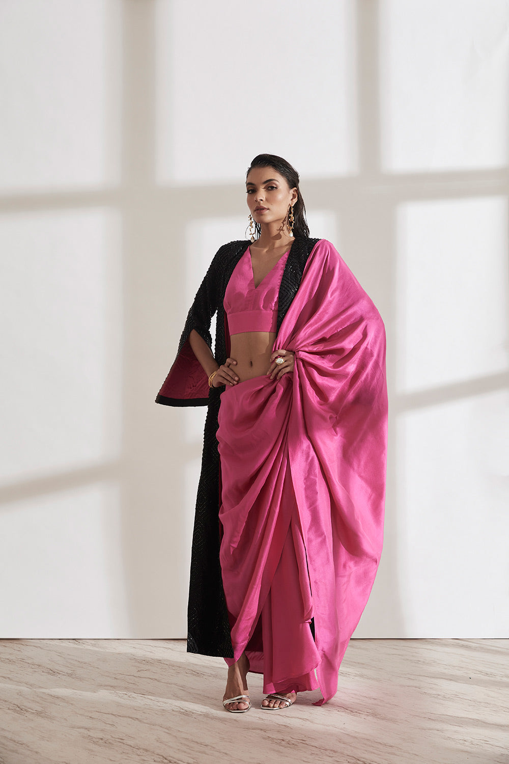 Our statement Masai Jacket crafted with an intricate hand embroidery with a slit sleeve detail. pair it with your slip dress or even your saris. it's a separate that will last.