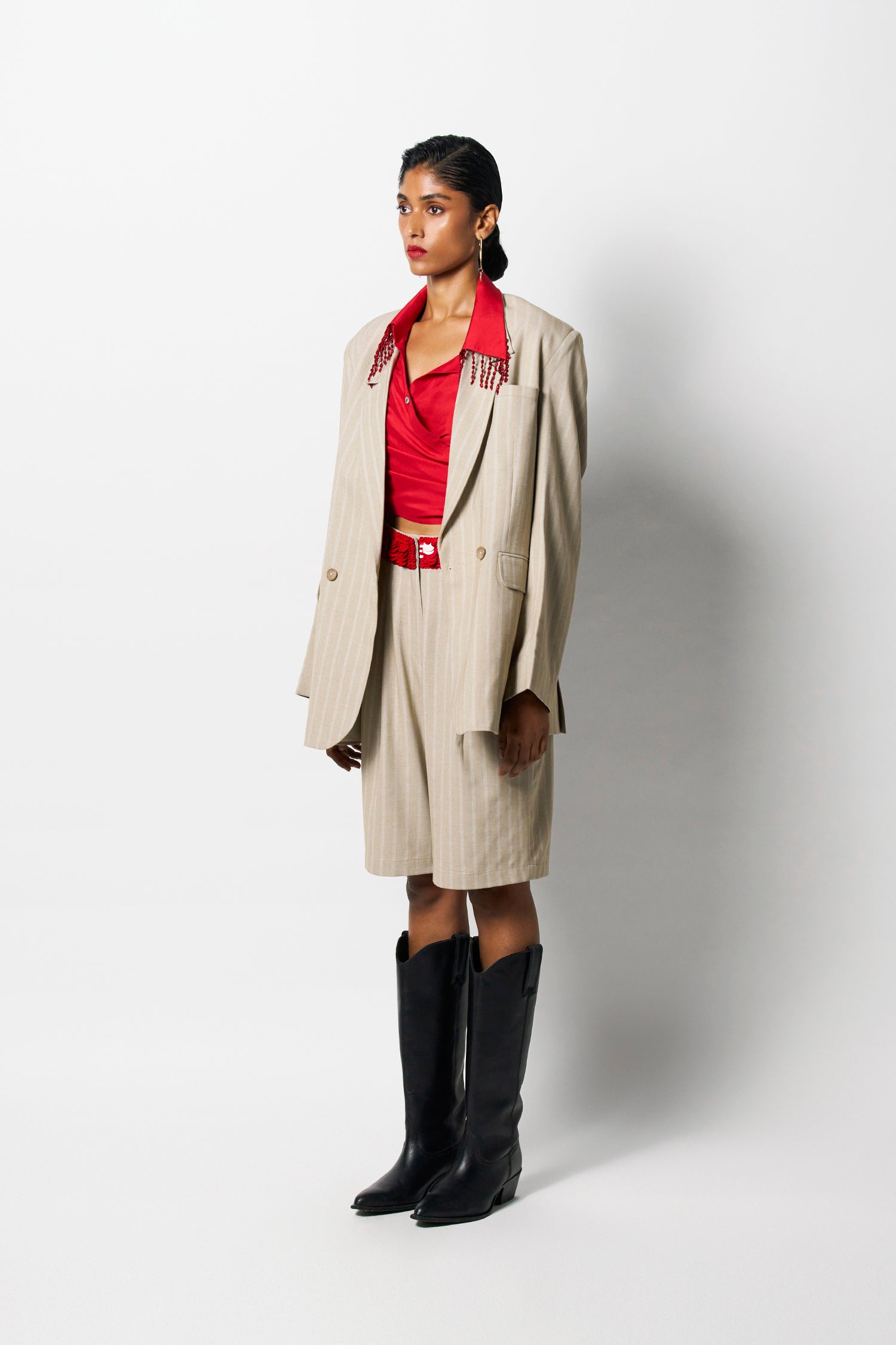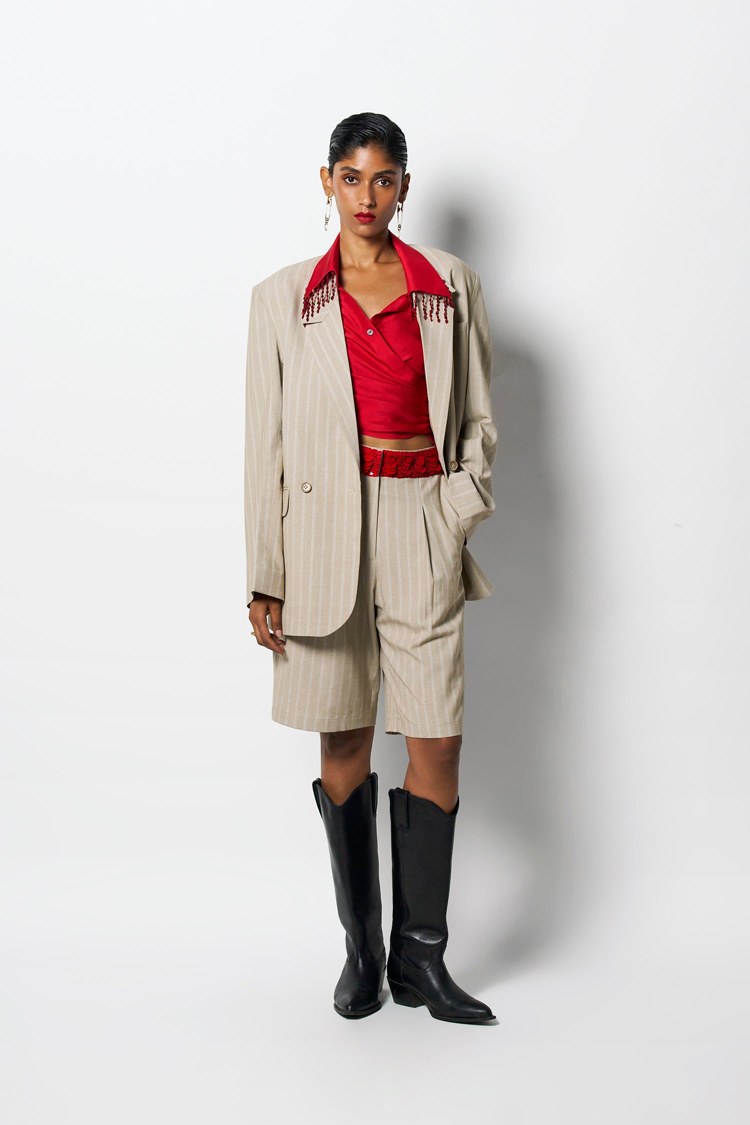 The Noah Blazer is an ode to classic tailoring. Cut from a luxe suiting fabric it has an oversized fit and is designed with notched lapels and a double-breasted button fastening. Complete your set with our matching trousers or shorts or style it as a separate over your dress or jeans.