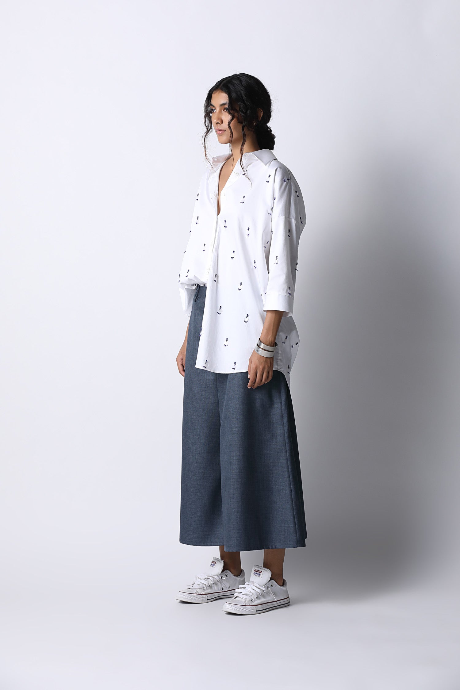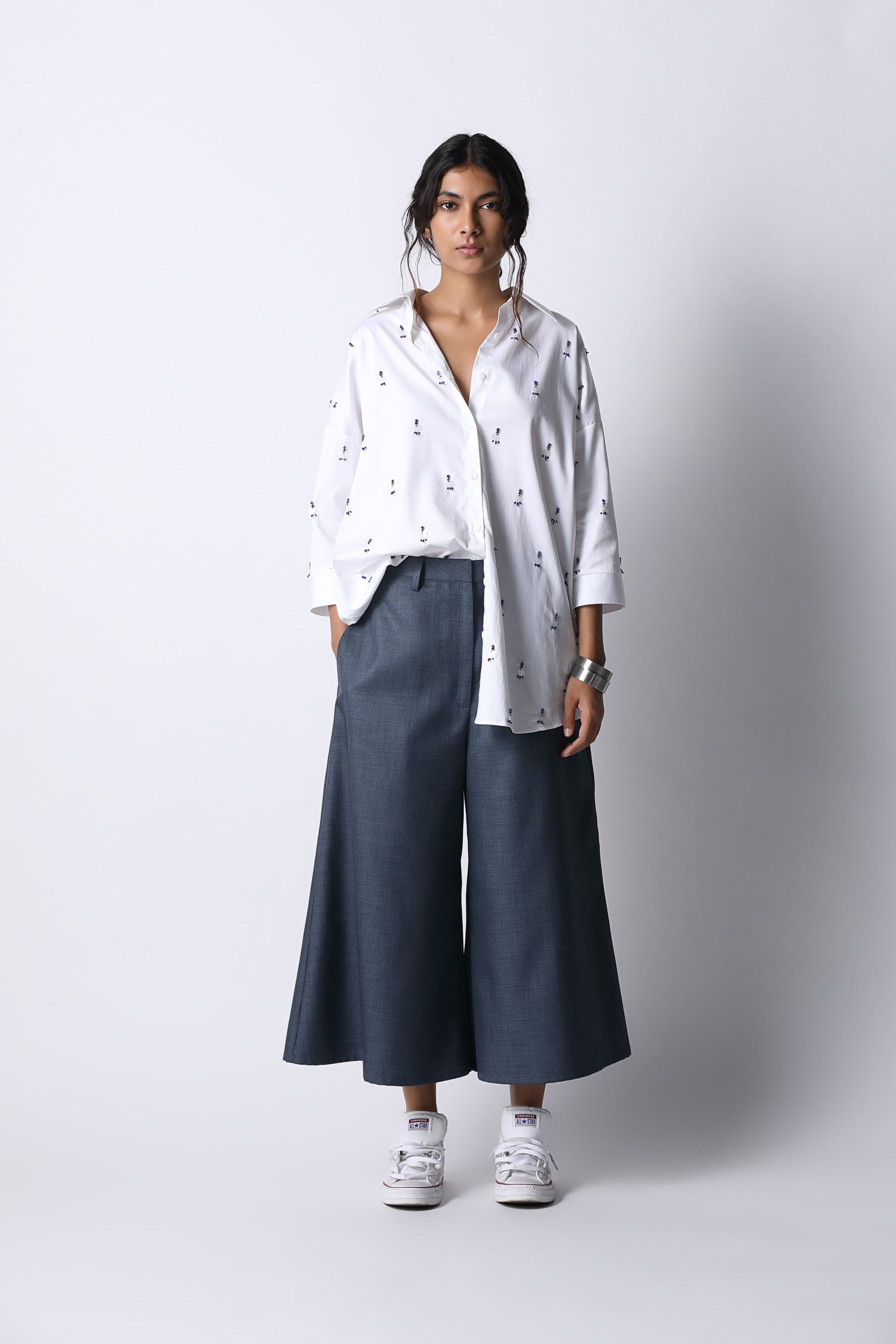 Everyday work pants when you are on the go. The Urban Culottes are designed to sit on the waist and fall to a breezy, wide-leg silhouette with a cropped length. Has pockets on both sides and a front zip. Pair it up with our bestselling shirts for a fun yet formal look.
