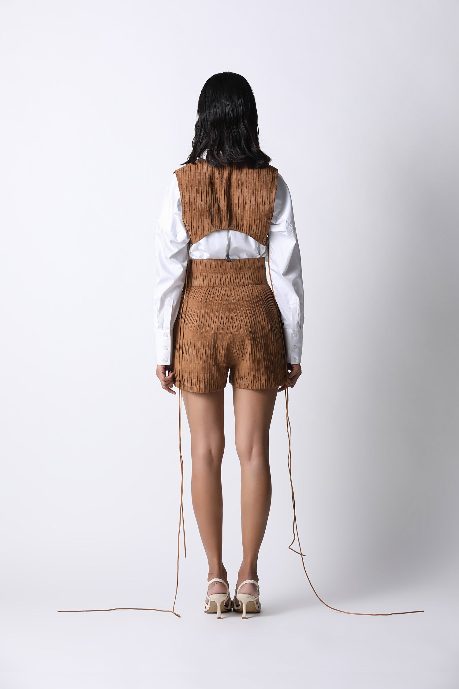Your classic cotton shirt taken up a notch. The Overlay Day Shirt is a relaxed fit shirt featuring a detachable suede overlay worn over the shoulders. The suede overlay can be styled over your other t-shirts and shirts as well. The shirt has long sleeves with buttoned cuffs. Pair with formal trousers or with the suede shorts for a fun look.