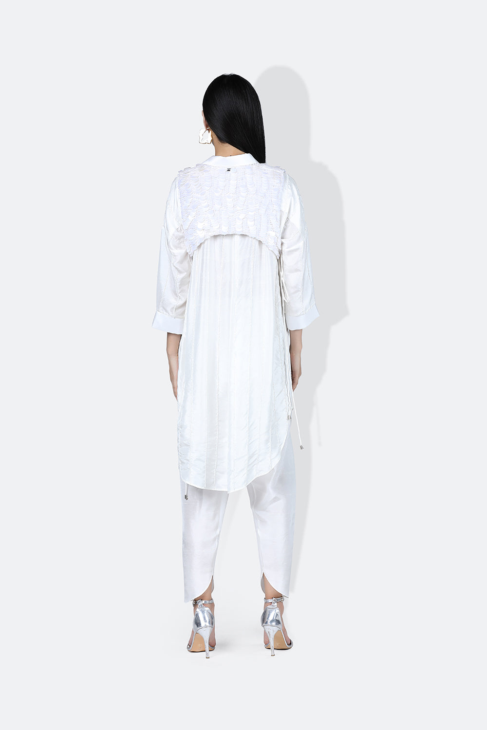 A freesize overlay hand embroidered with round sequins of different sizes sequins. A versatile piece that can be styled with everything.