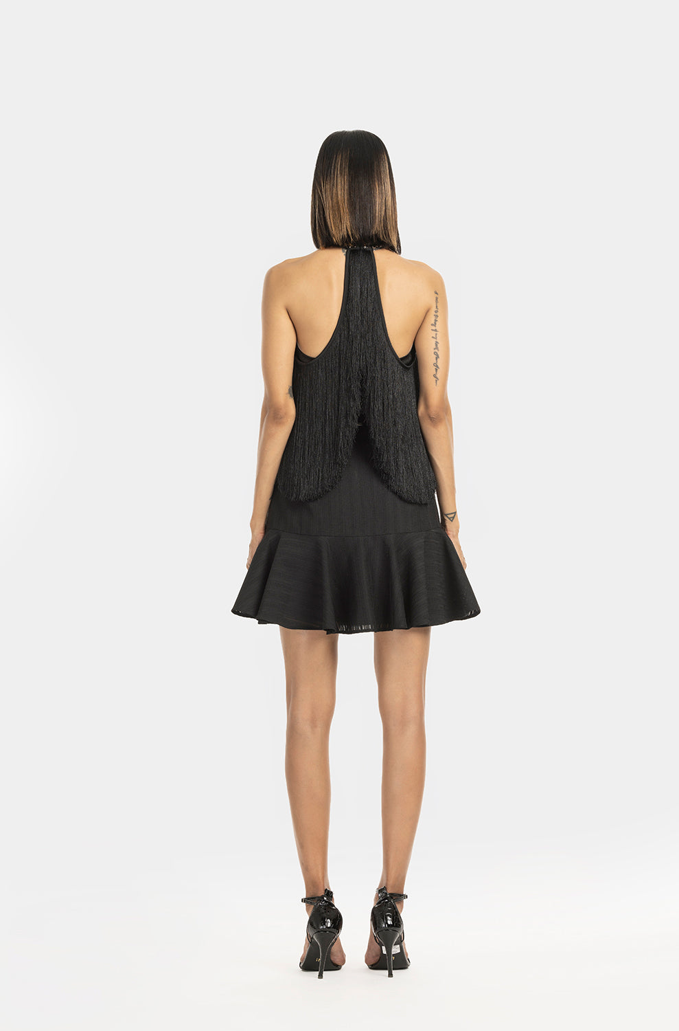 Coco Skirt is our mini skirt with a knot twist detail at the waist. It flares out with a ruffled hem and closes on the side with a concealed zip. Wear it with your favourite white shirt for a coordinated day look.