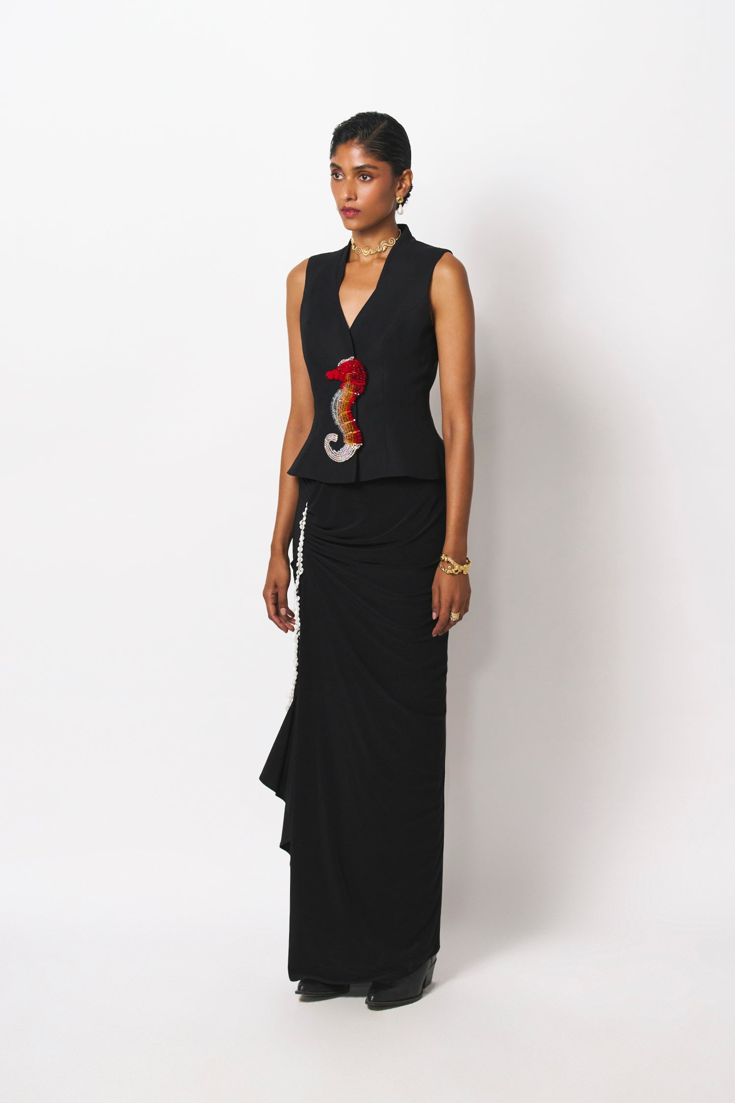 Our draped H.R Skirt is draped in jersey that sits perfectly on a body. It features gathered details with contrasting handcrafted tassels to add the glam factor. Designed with an asymmetrical waistband, a slit at the hem, and a concealed side zipper, it's perfect for a night out.