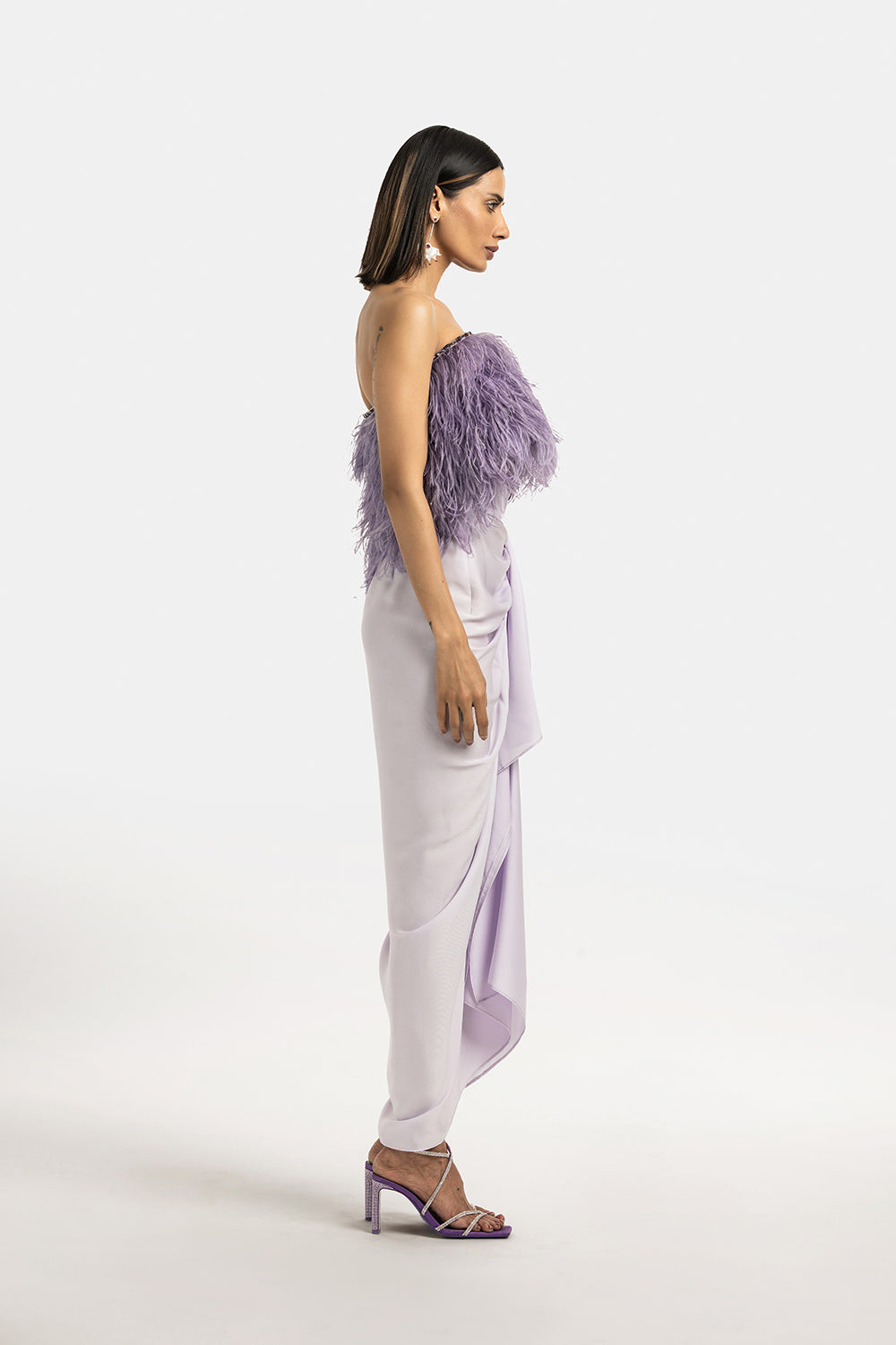 Our signature draped Samara Skirt that's cut in a narrow pencil fit. The front drape gives a flattering look to the body and can be worn with a shirt or your favourite top. The satin sheen makes it a great option for a night out. It closes on the side with a concealed zip.