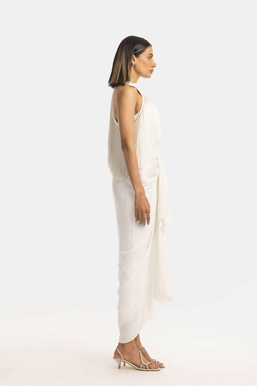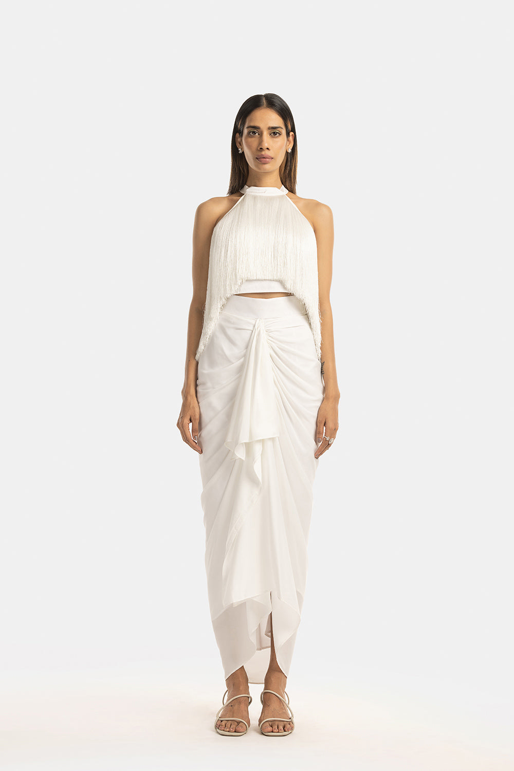 Our signature draped Samara Skirt that's cut in a narrow pencil fit. The front drape gives a flattering look to the body and can be worn with a shirt or your favourite top. The satin sheen makes it a great option for a night out. It closes on the side with a concealed zip.